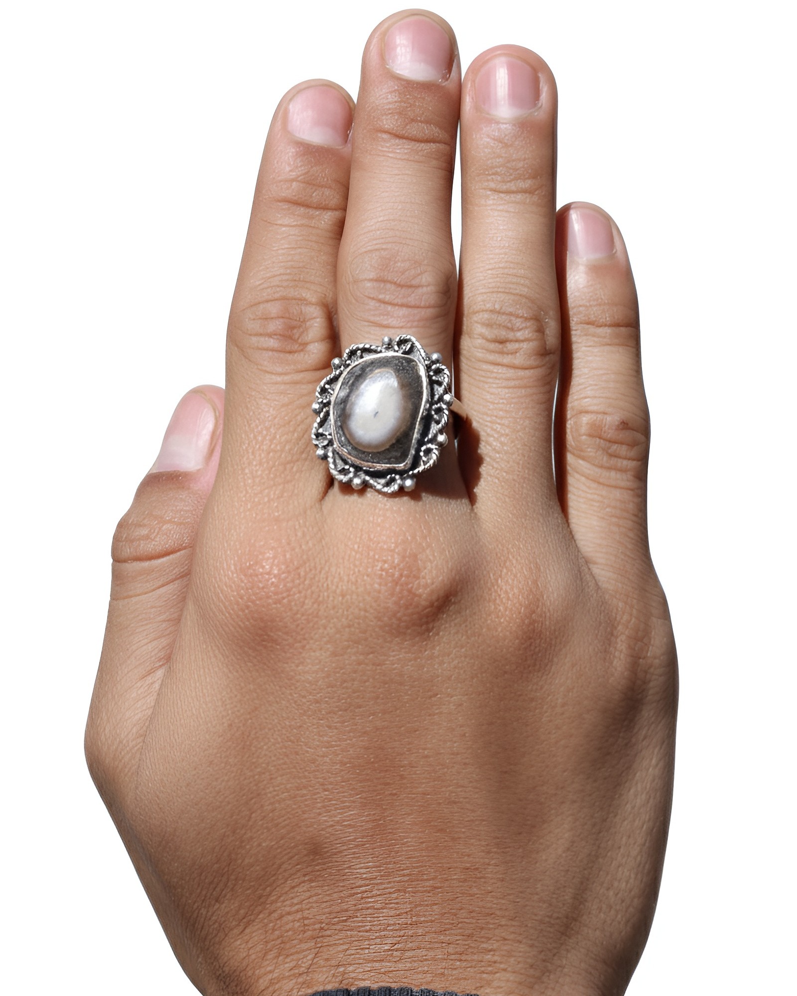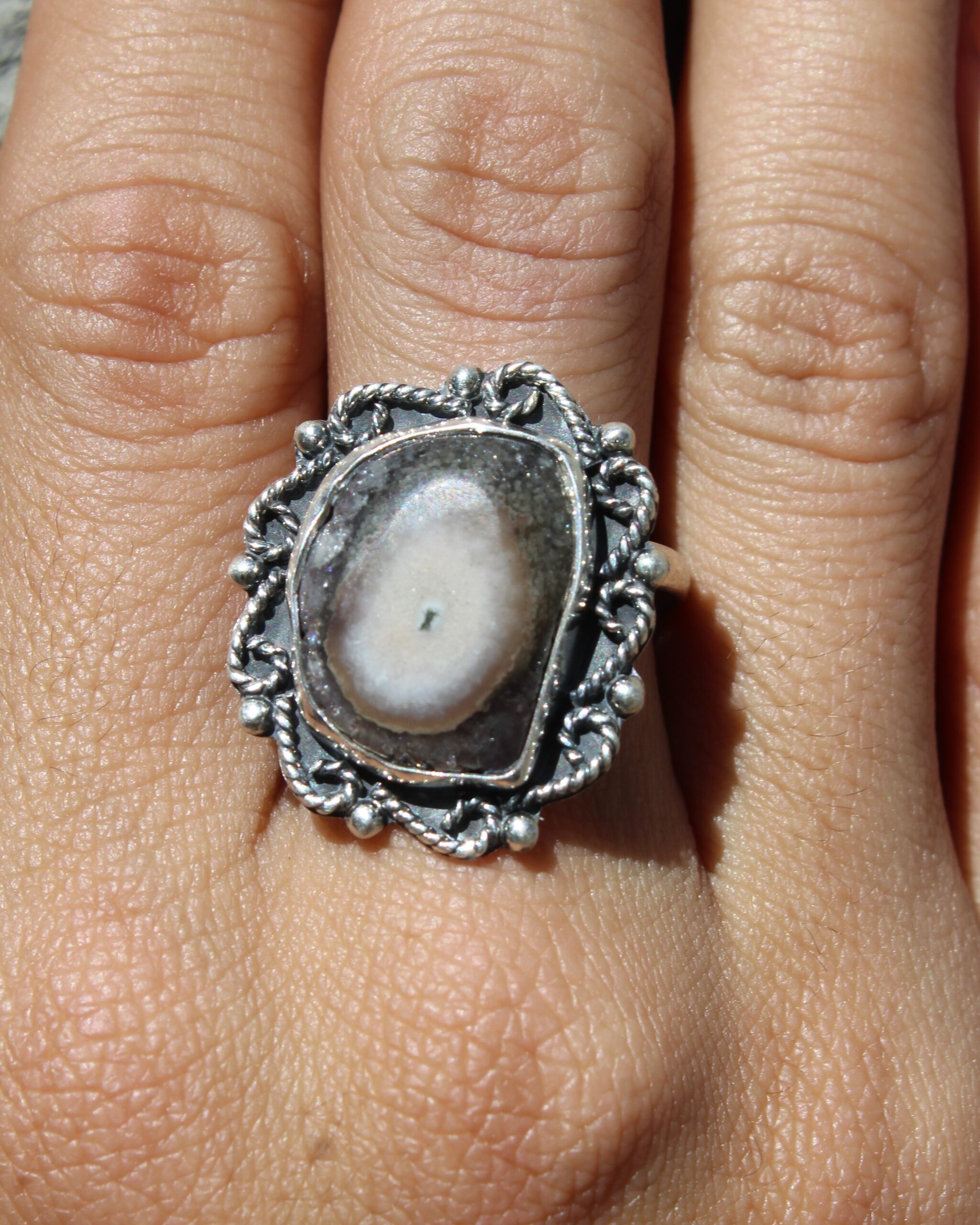 Anillo de plata .925, con ágata de forma amorfa y tamaño grande, que destaca por su diseño.