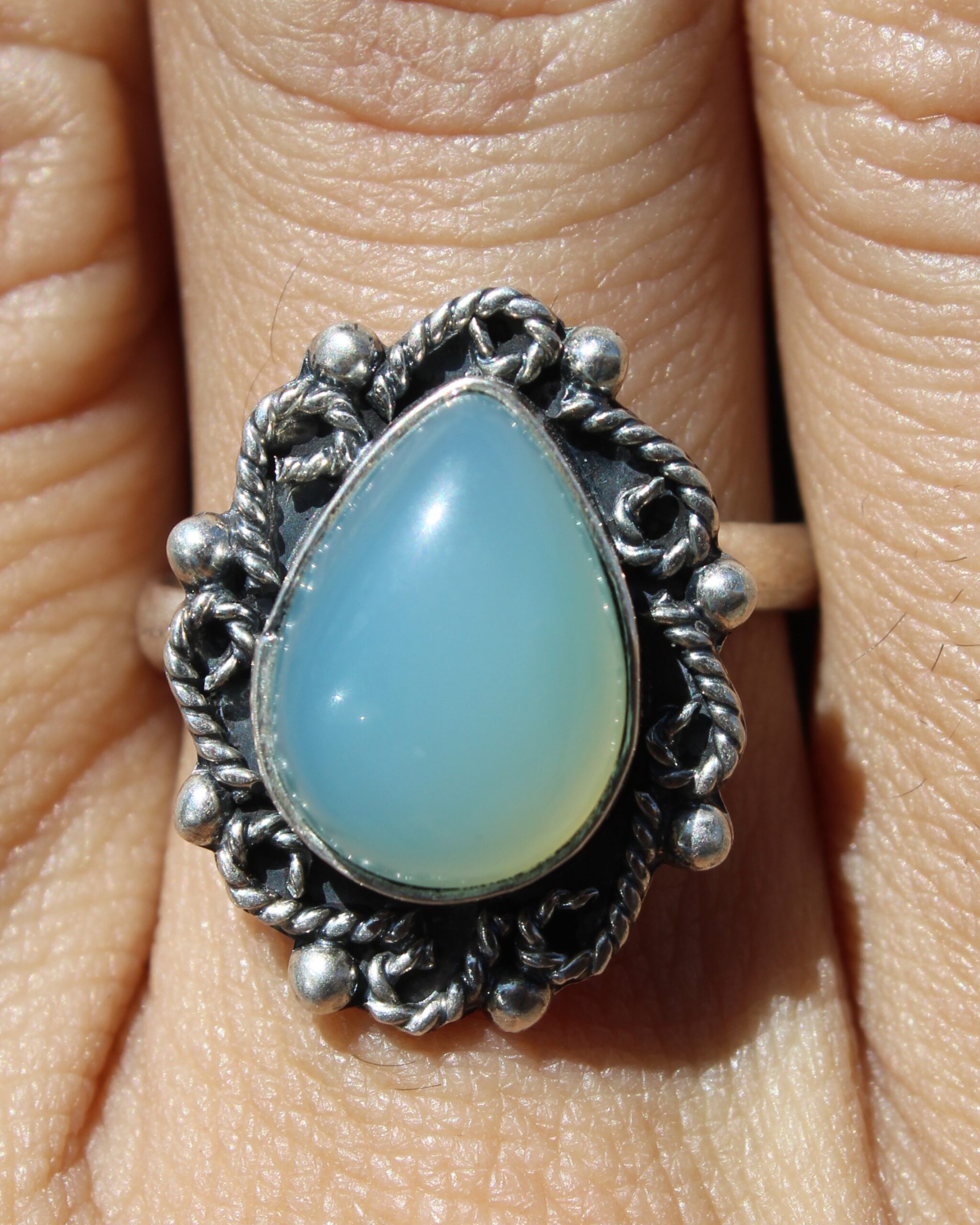 Anillo Plata Aguamarina Gota Grande