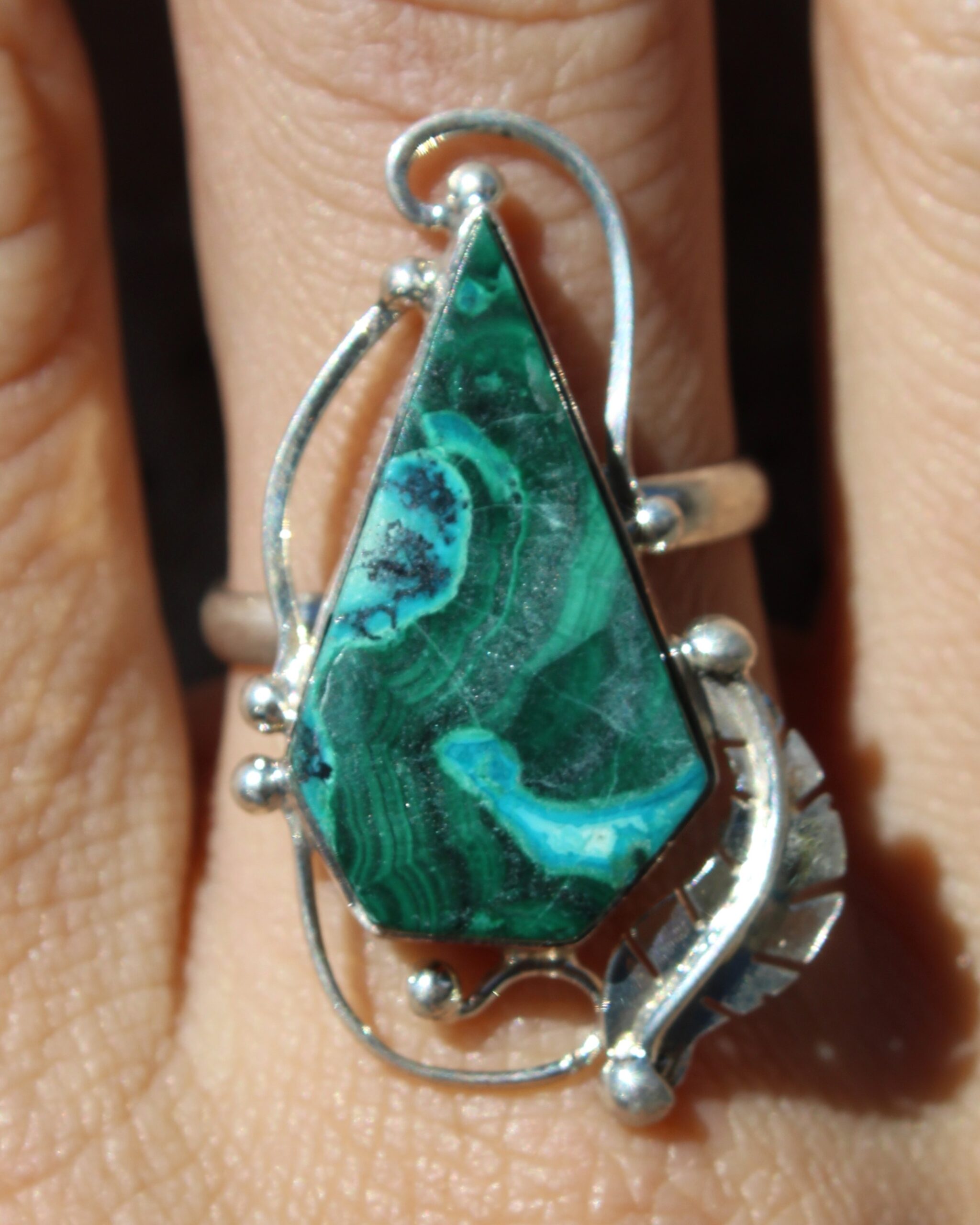 Anillo Plata Malaquita Gota y Pluma