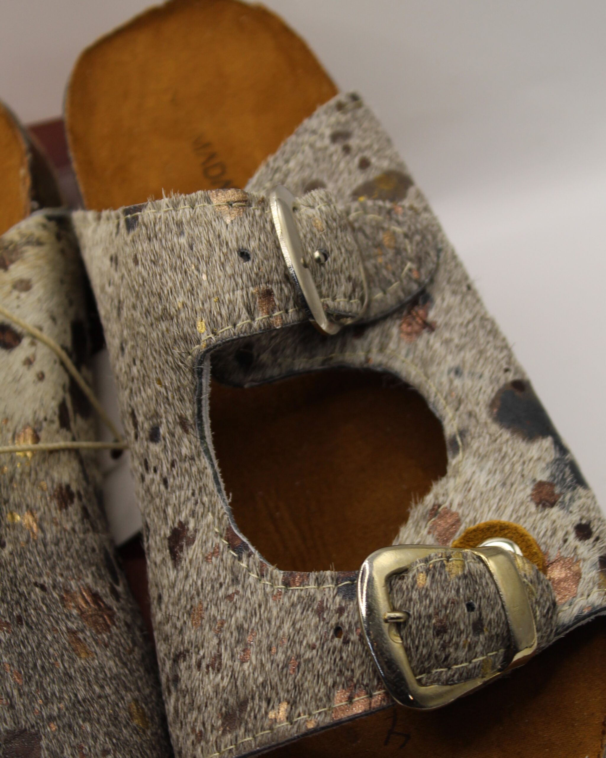 Sandalias Birkin de fabricación artesanal, realizadas en piel de vaca y presentadas en color gris. Un calzado firme, cómodo y de estética minimalista, perfecto para un look actual y funcional.