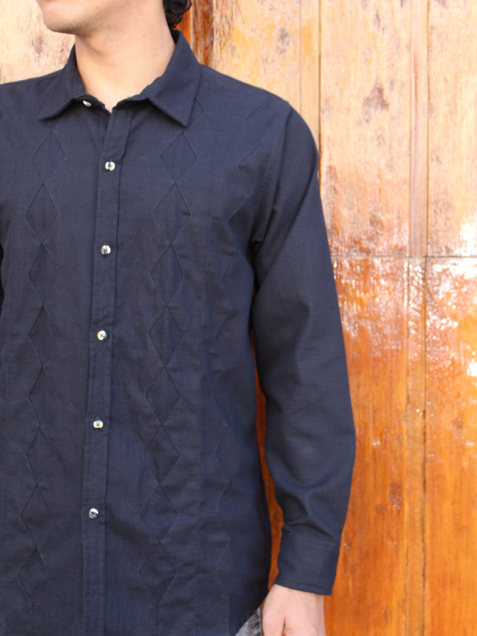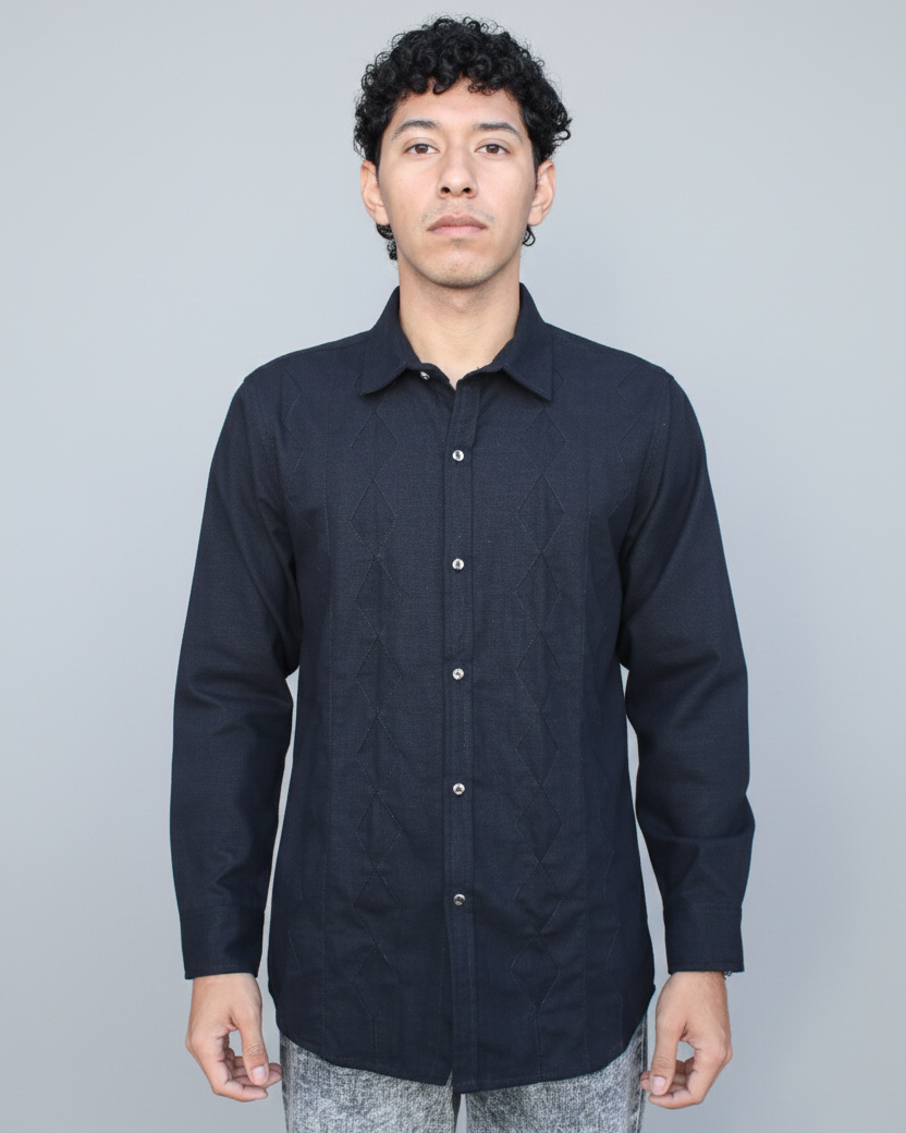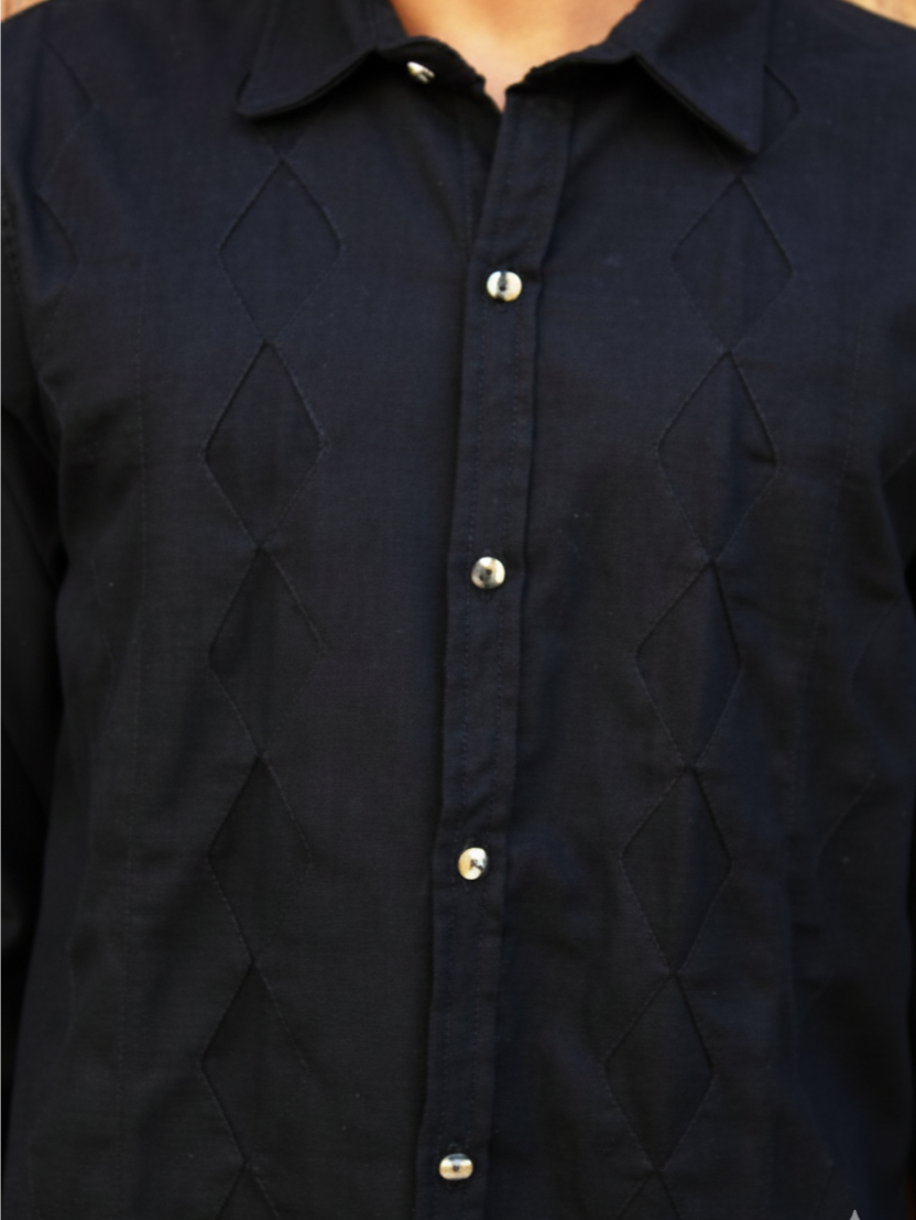 Olvidate de la camisa negra simple con esta bonita camisa con un único diseño de rombos que crea un efecto visual dinámico y estructurado, inyectando una dosis de sofisticación geométrica a tu look.