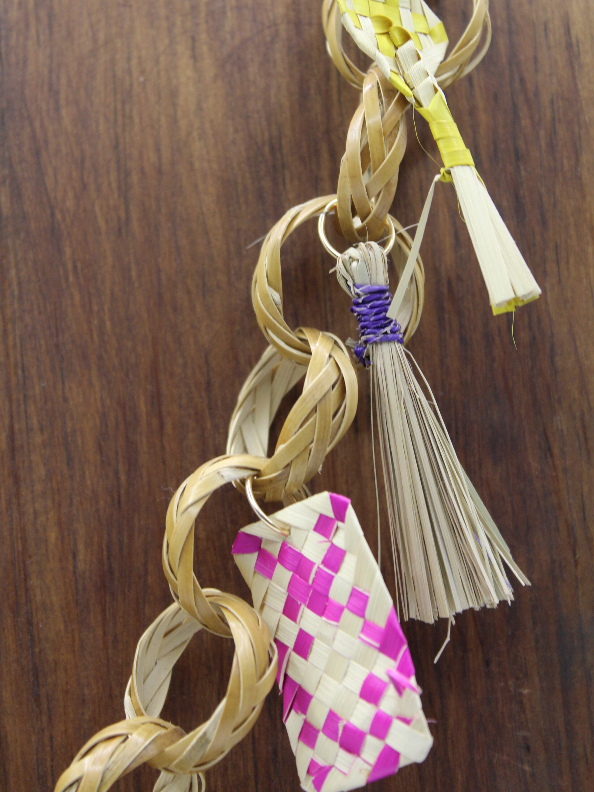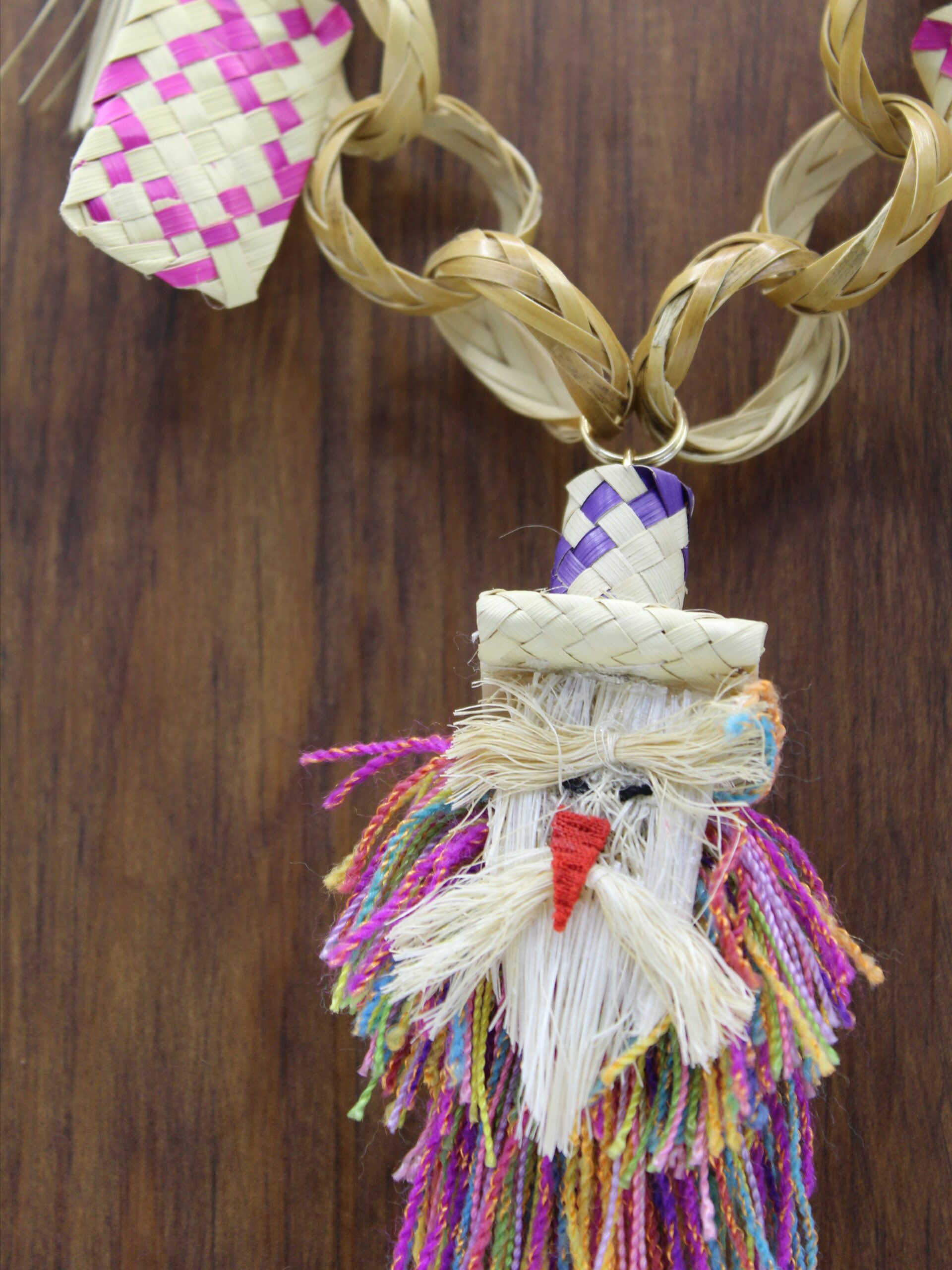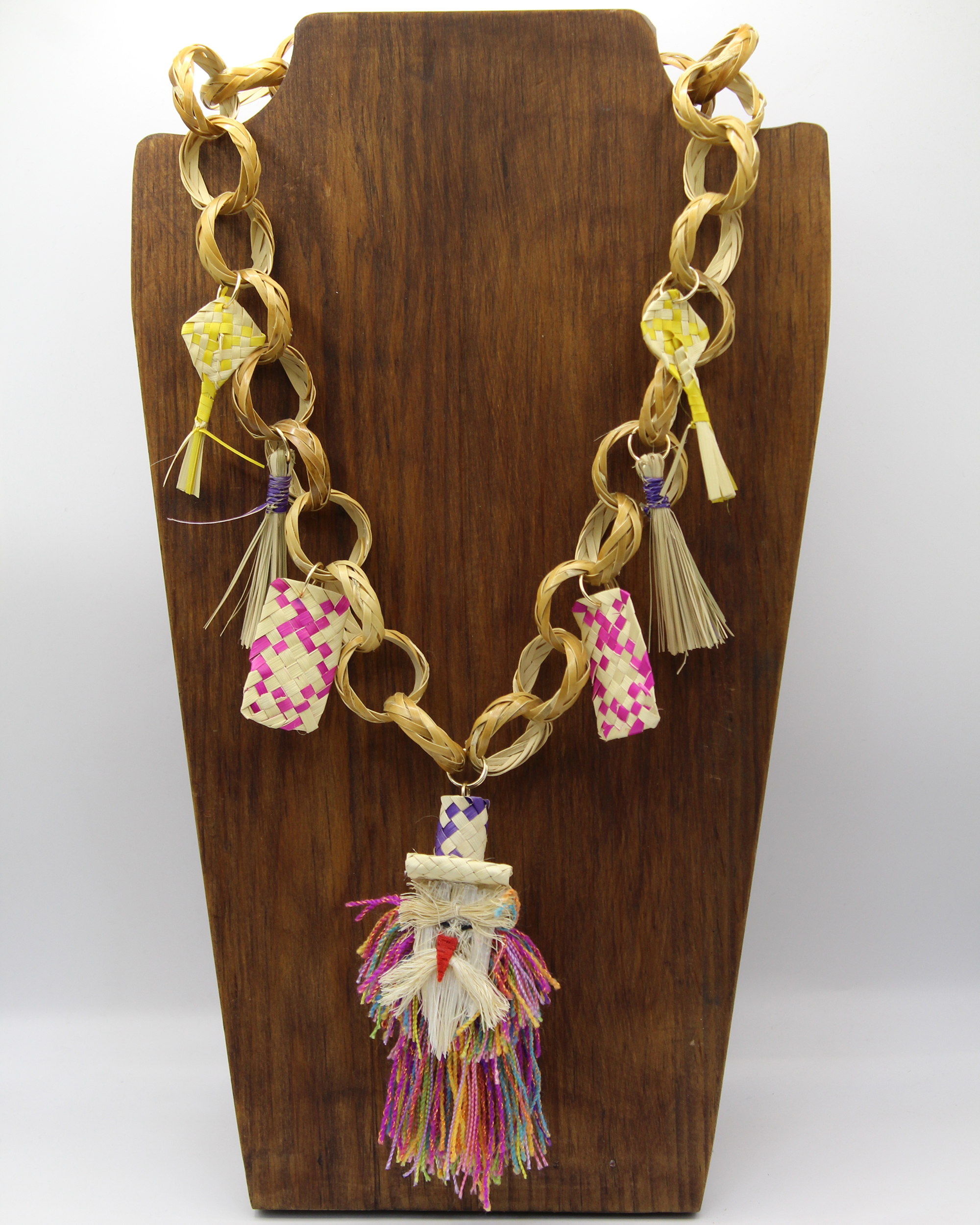 Complementa tu outfit con este collar una pieza elaborada con carrizo y palma tejida que celebra la riqueza artesanal de Oaxaca. Su tiliche en miniatura al centro le da un toque único.