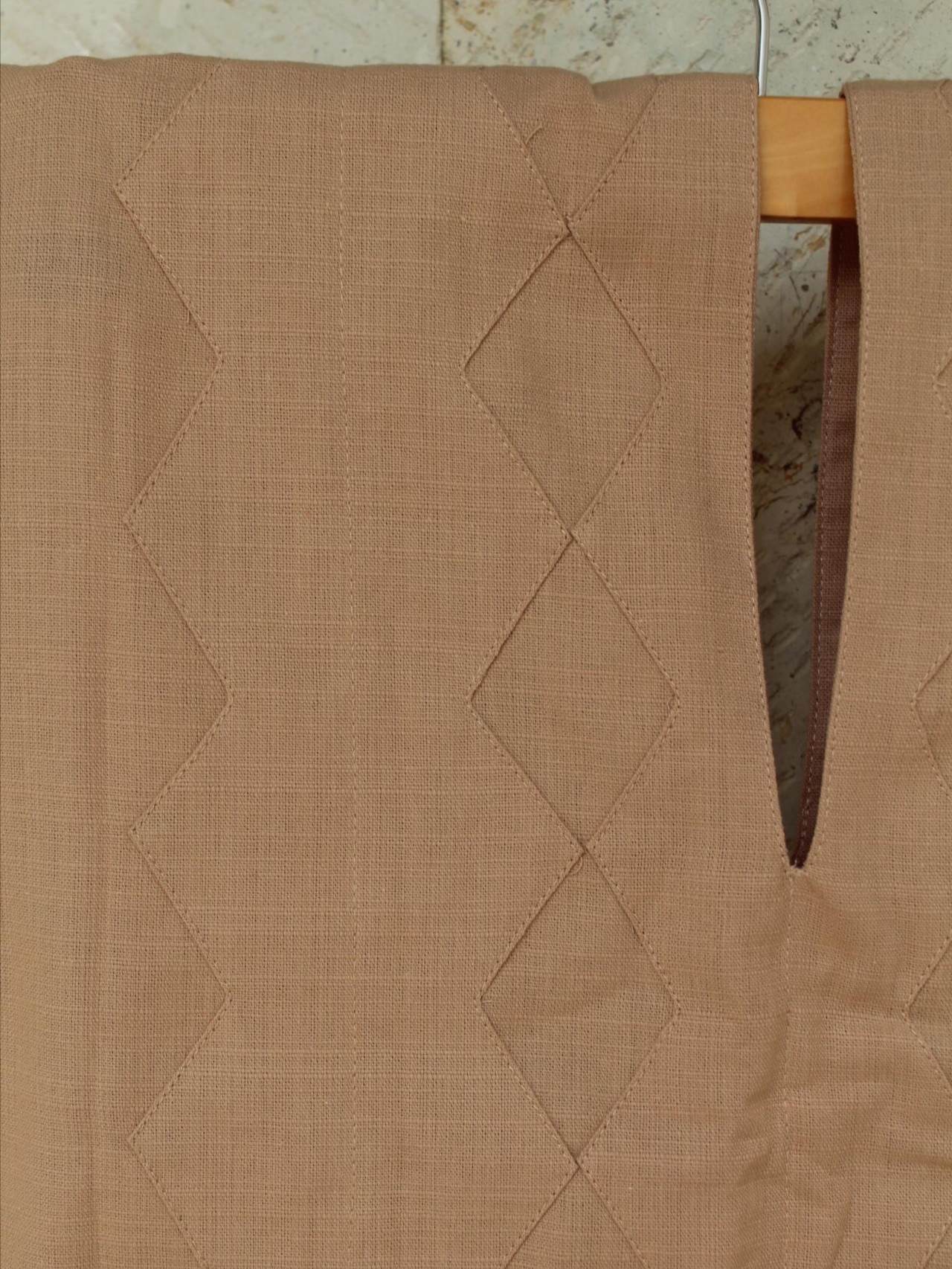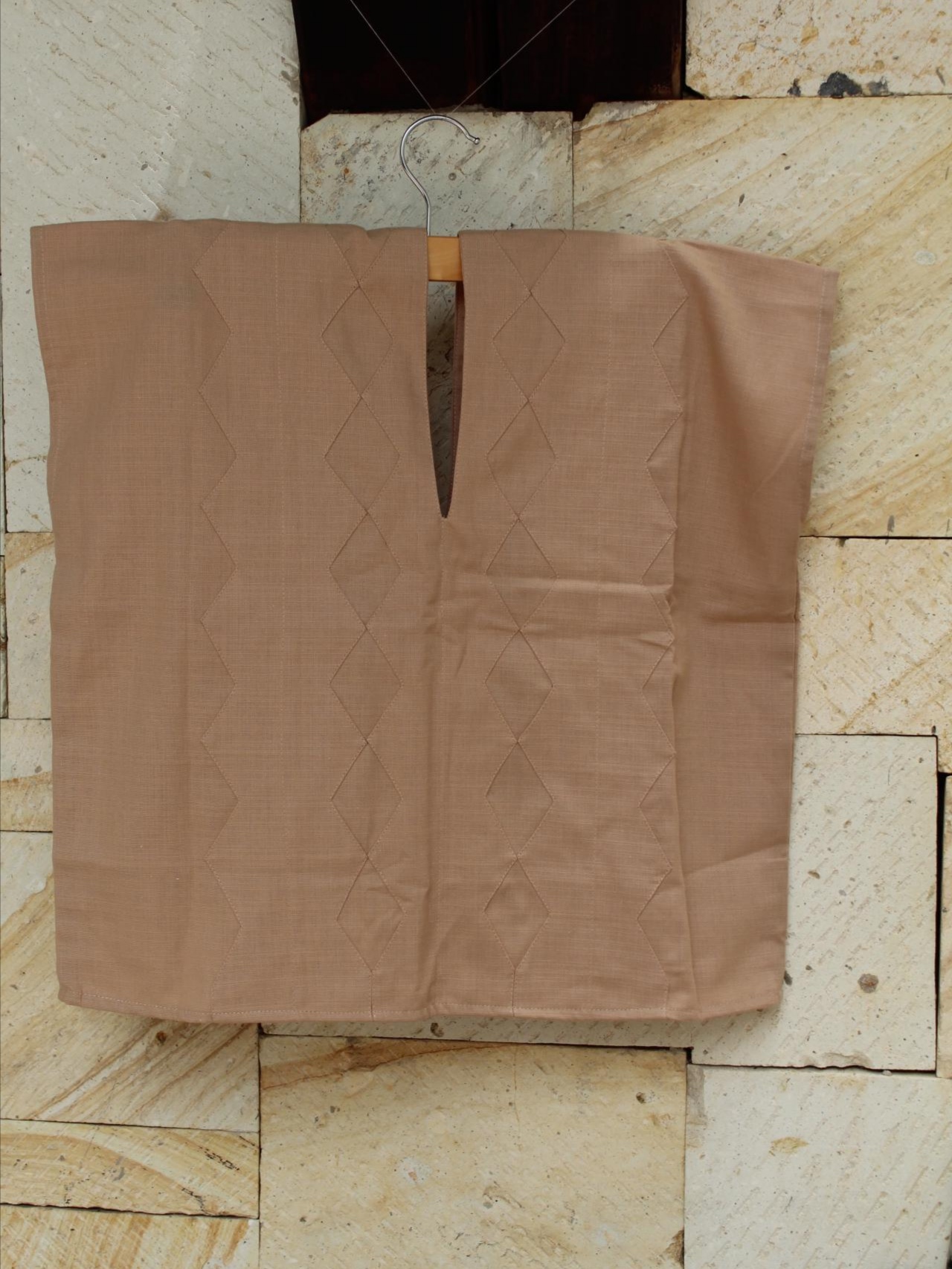 Complementa tu outfit con este increíble Crop-Top sin mangas hecho de lino con diseño de rombos en un hermoso color arena.
