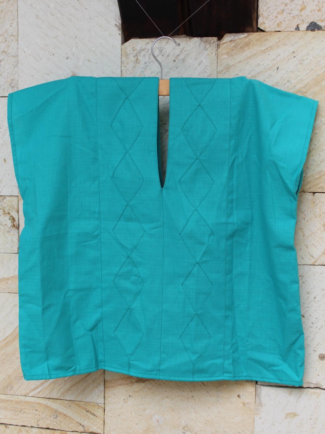 Luce este increíble Crop-Top sin mangas hecho de lino maría con diseño de rombos en un precioso color jade,que te hará lucir espectacular y al mismo tiempo fresc@, ideal para cualquier look.