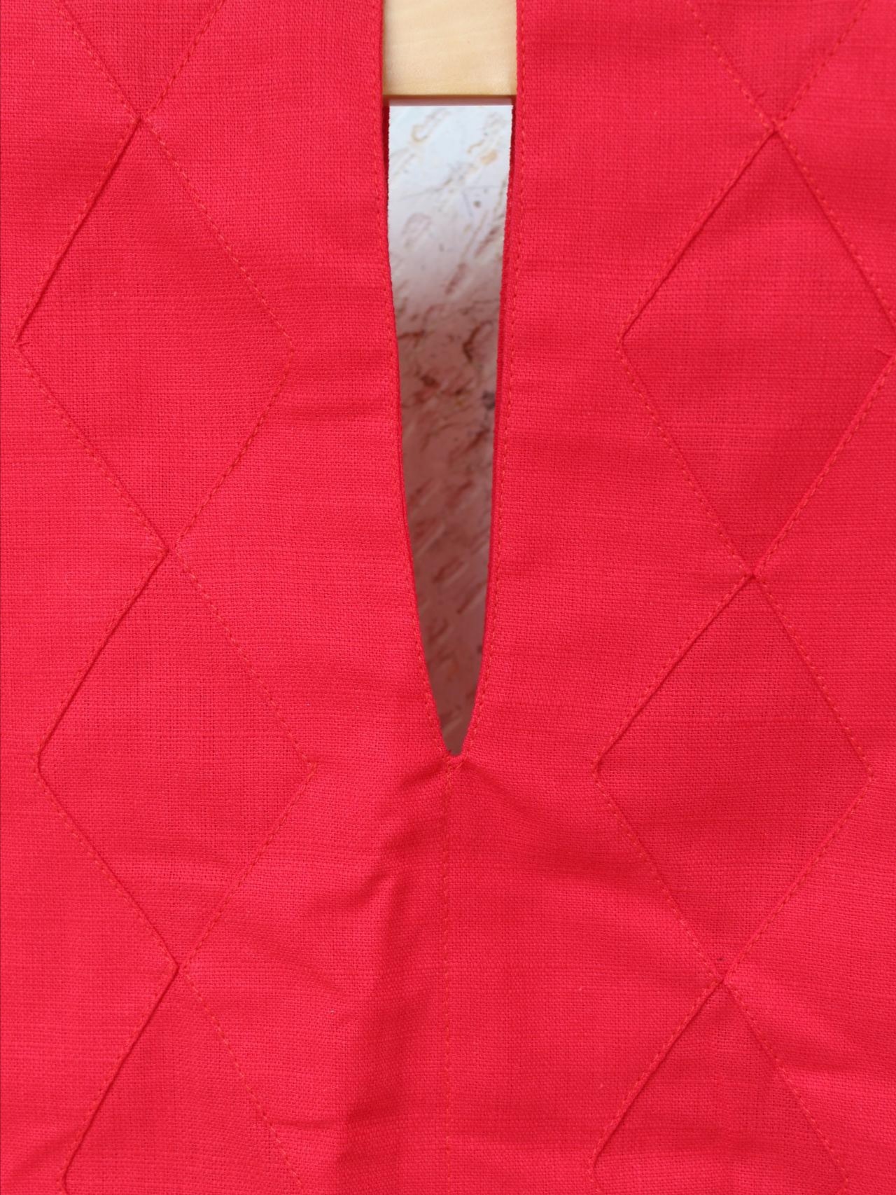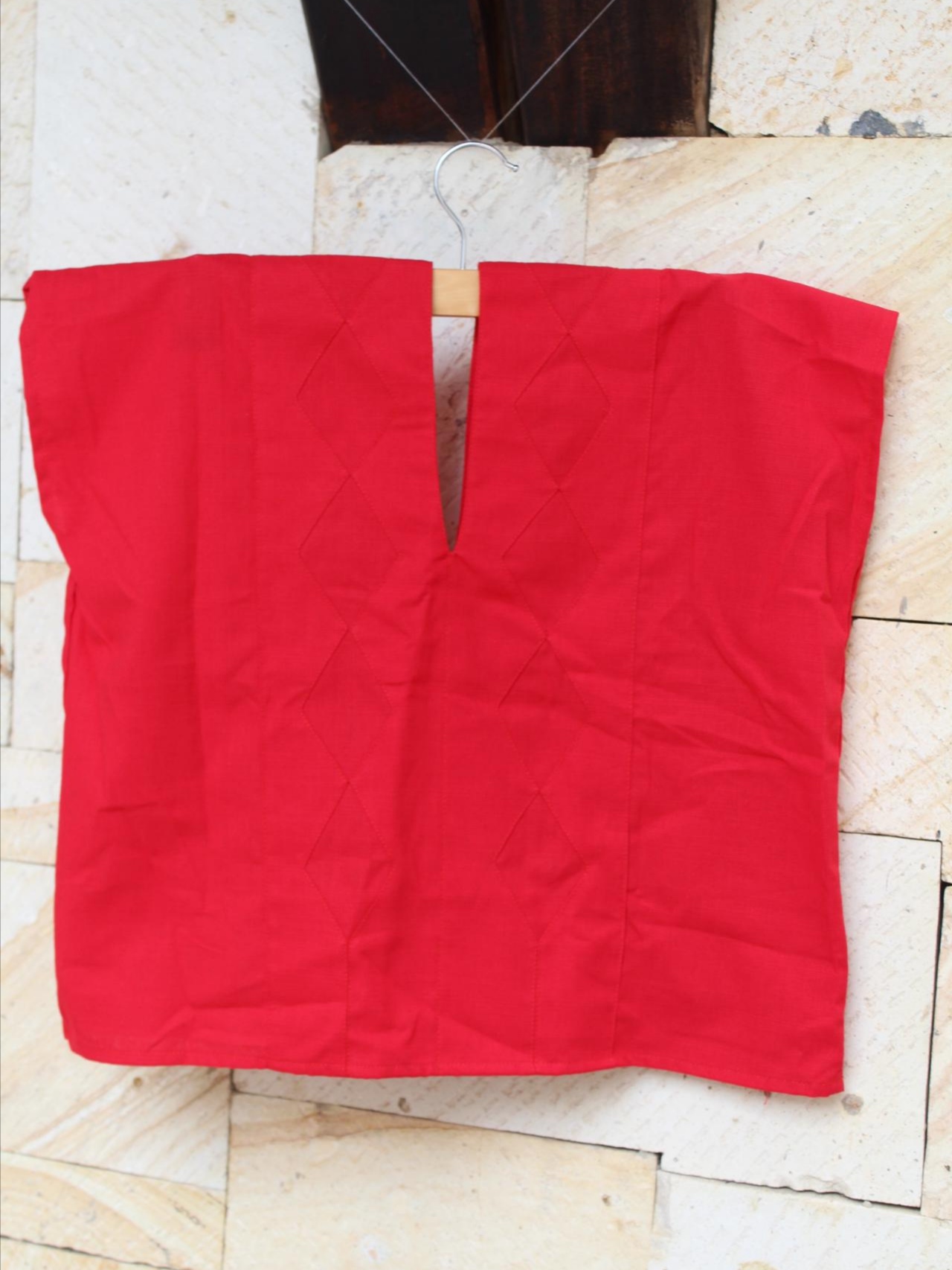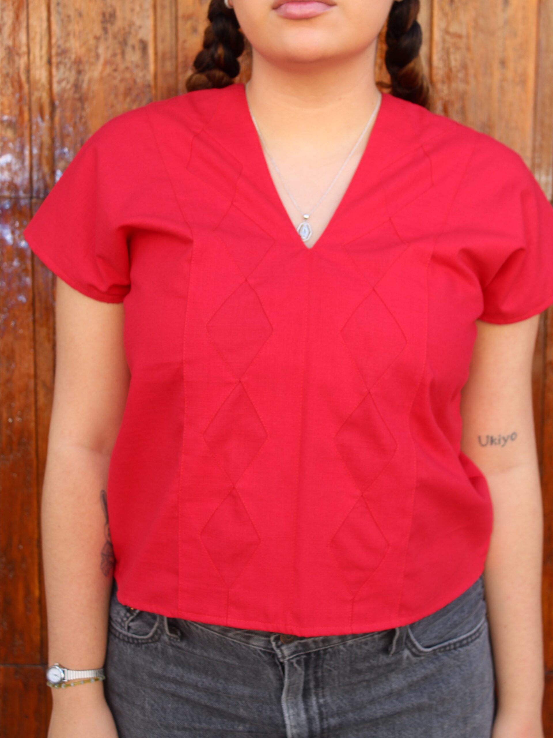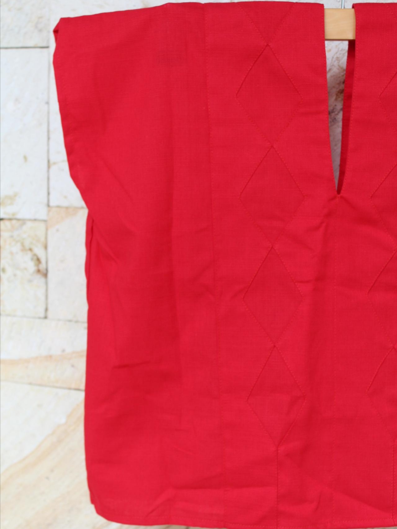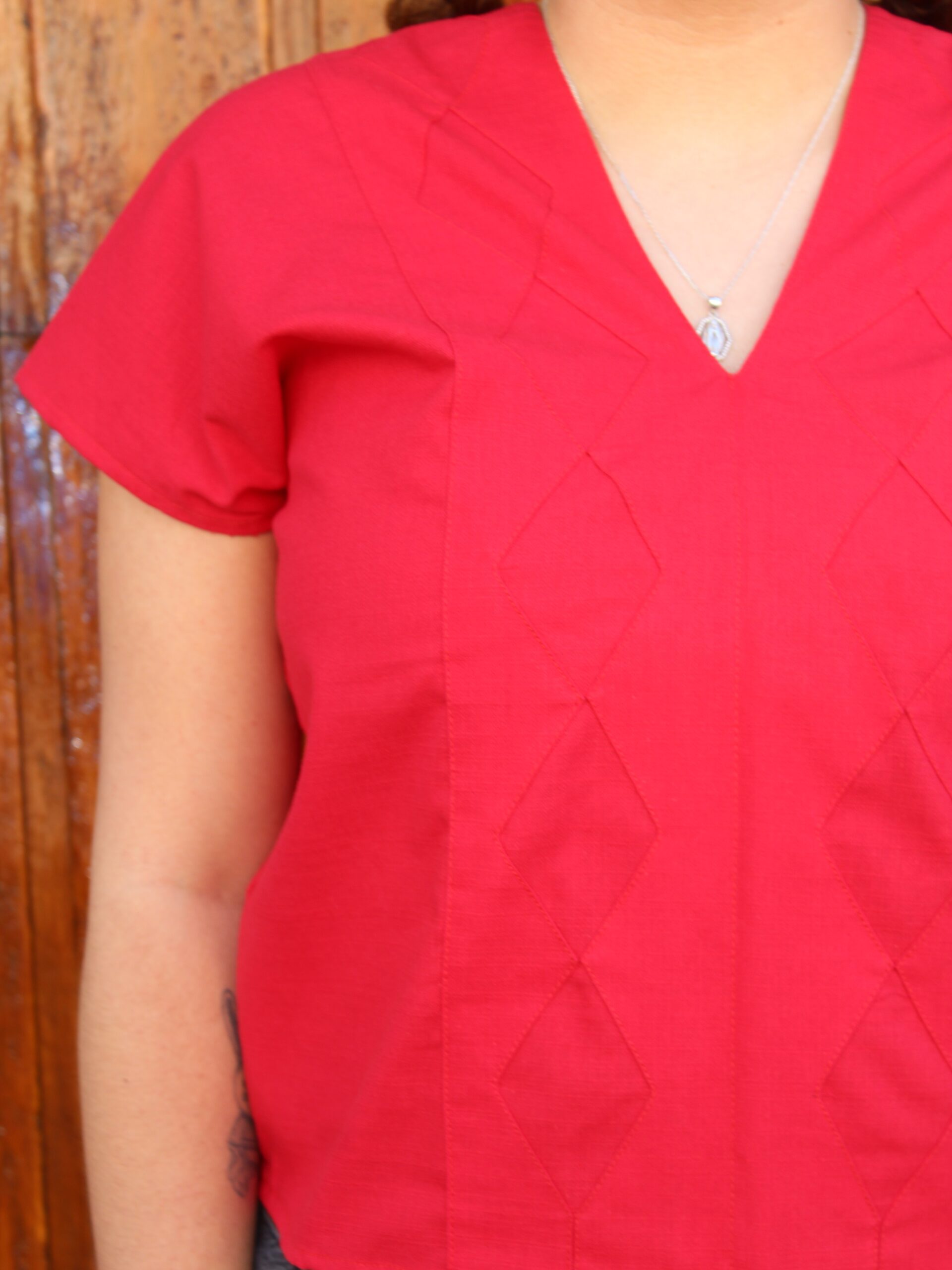 Hermoso Crop-Top sin mangas hecho de lino maría con diseño de rombos en un deslumbrante color rojo.