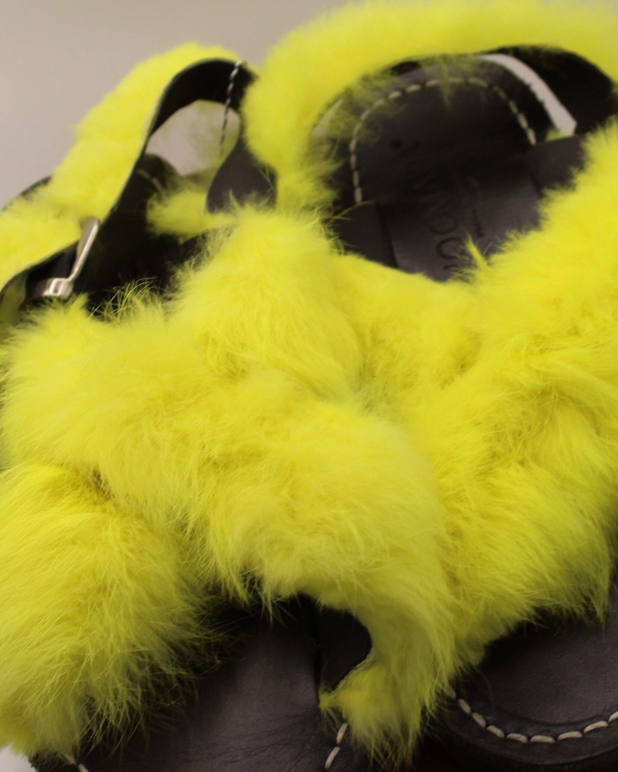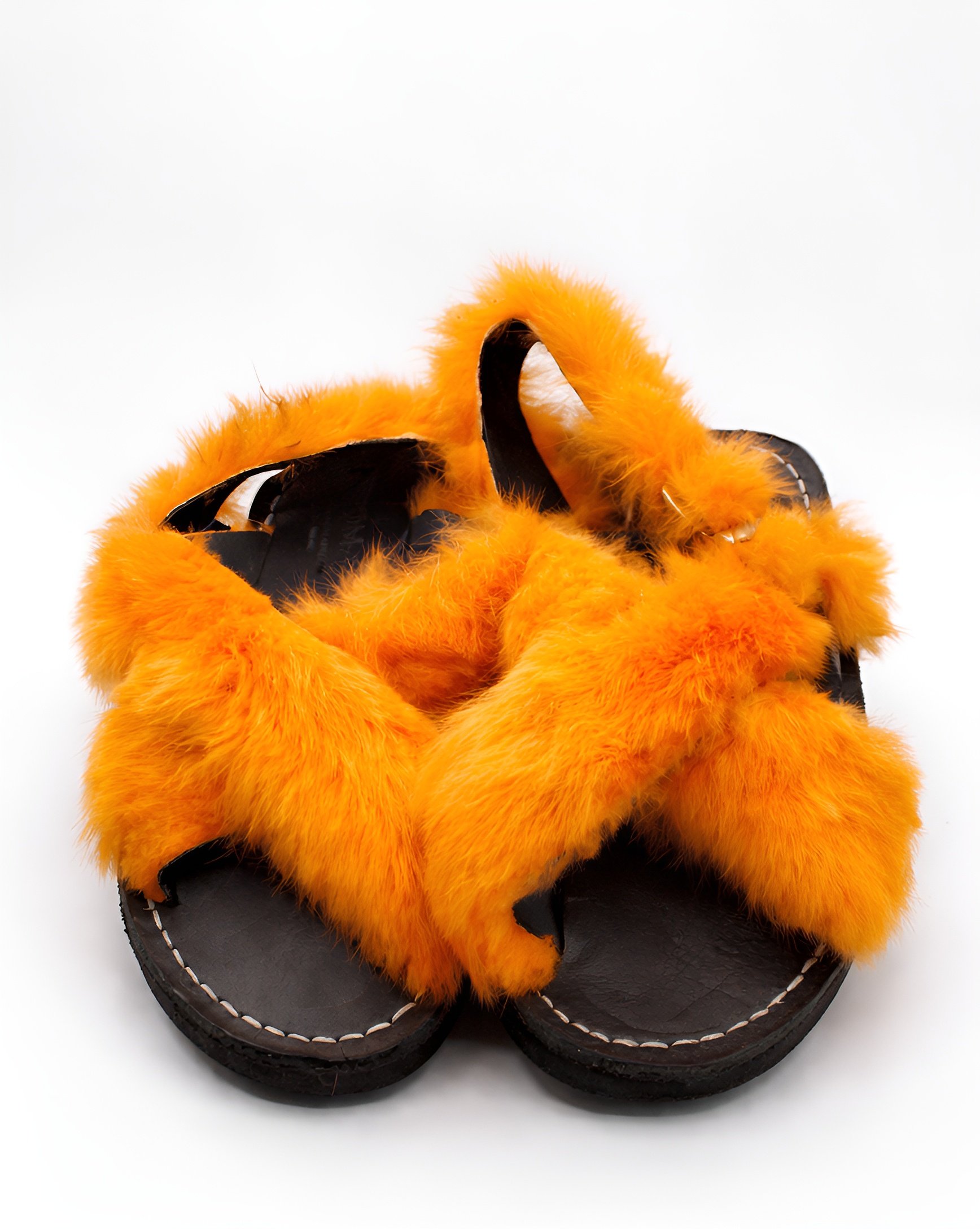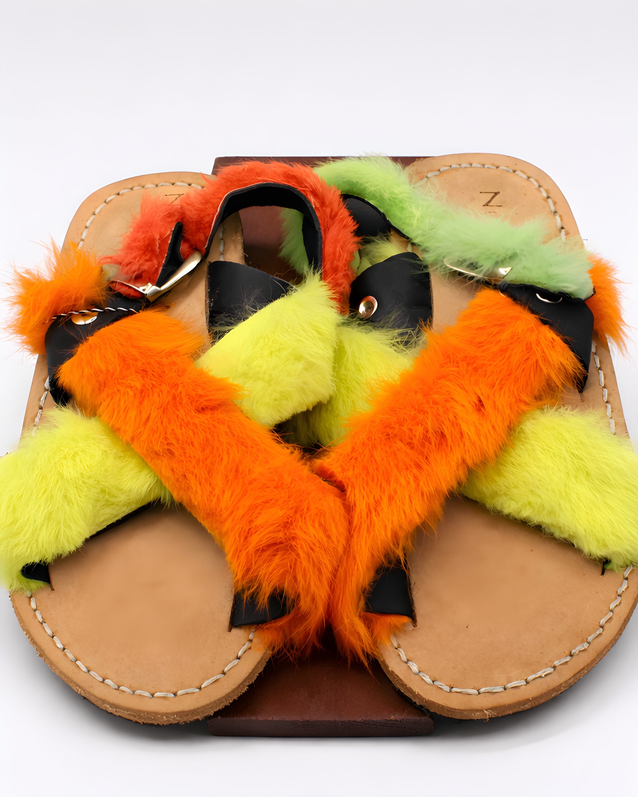 Huaraches artesanales elaborados en piel de conejo, disponibles en diferentes colores y forrados con suela de llanta para mayor durabilidad. Modelo cómodo y resistente en talla #26, ideal para uso diario con estilo.