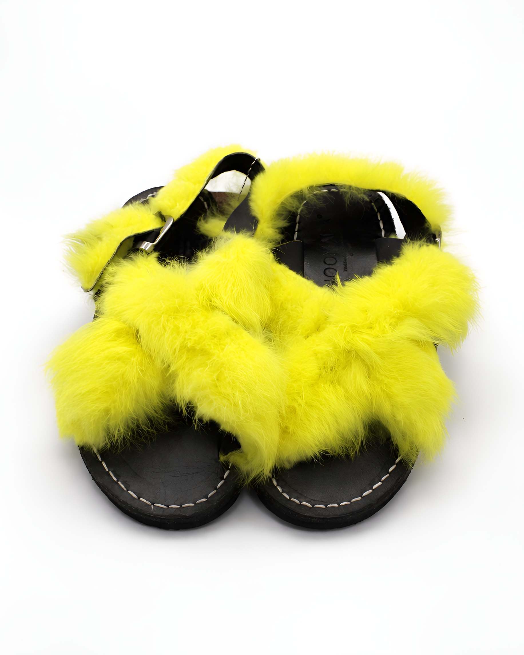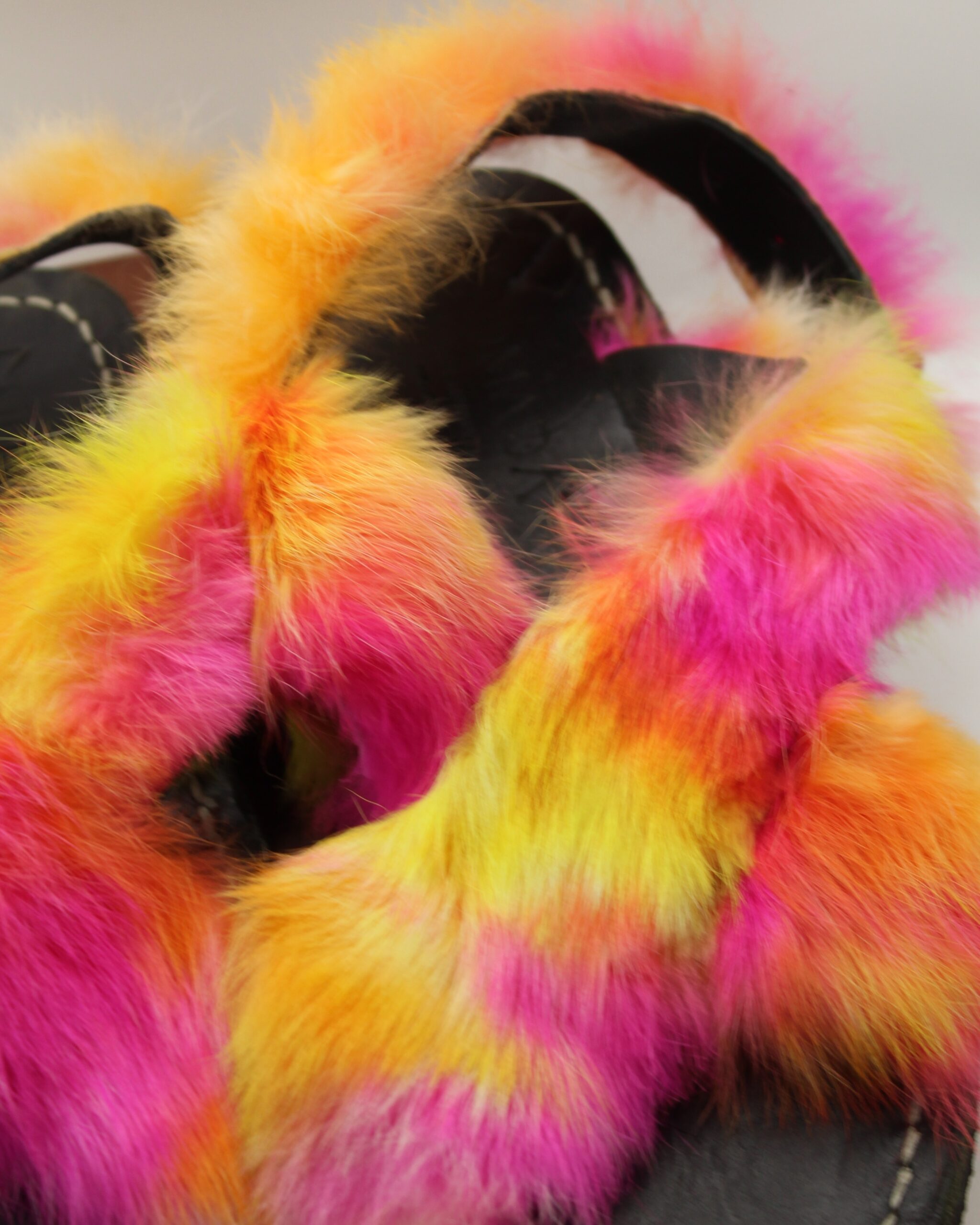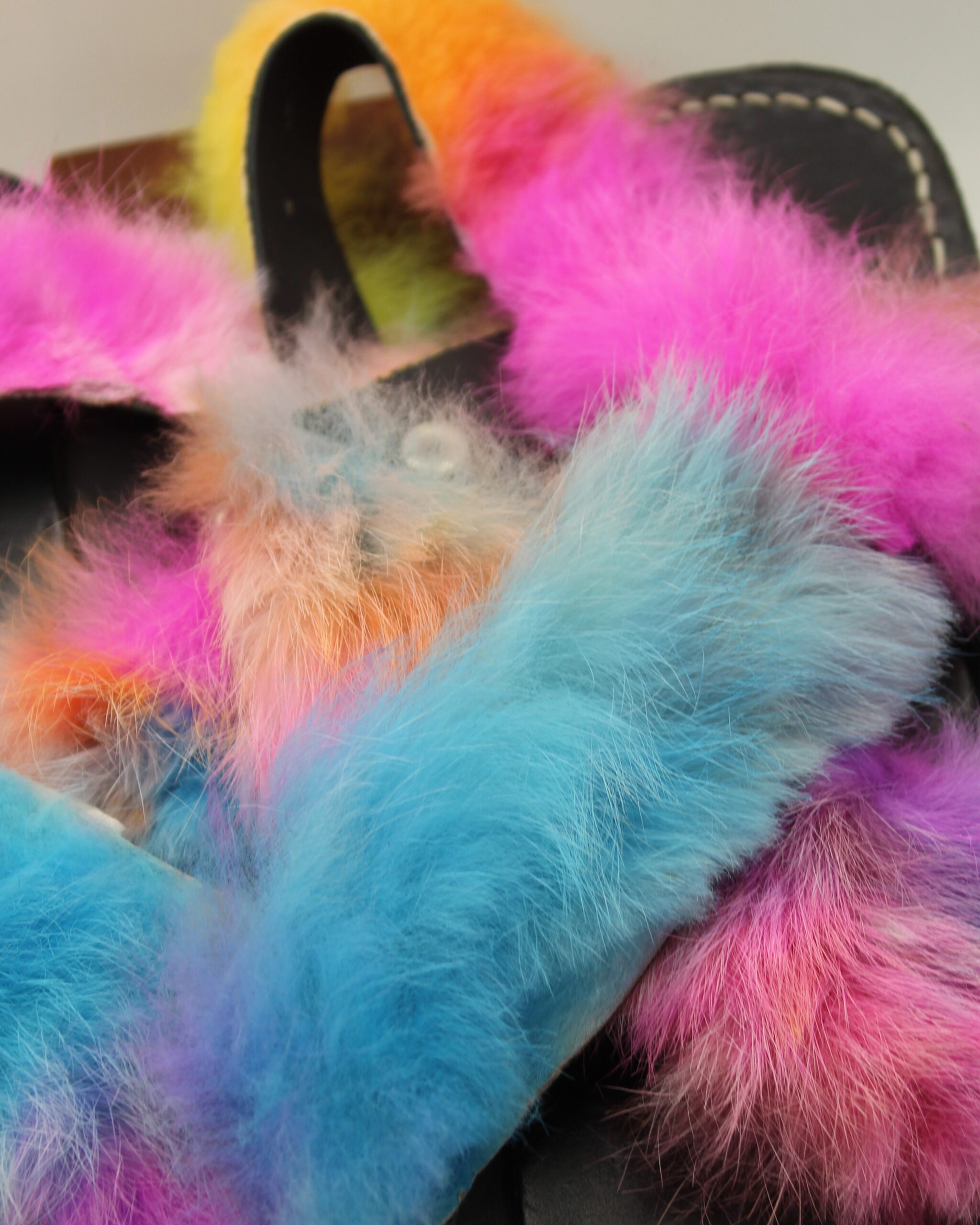 Huaraches artesanales elaborados en piel de conejo, disponibles en diferentes colores y forrados con suela de llanta para mayor durabilidad. Modelo cómodo y resistente en talla #26, ideal para uso diario con estilo.