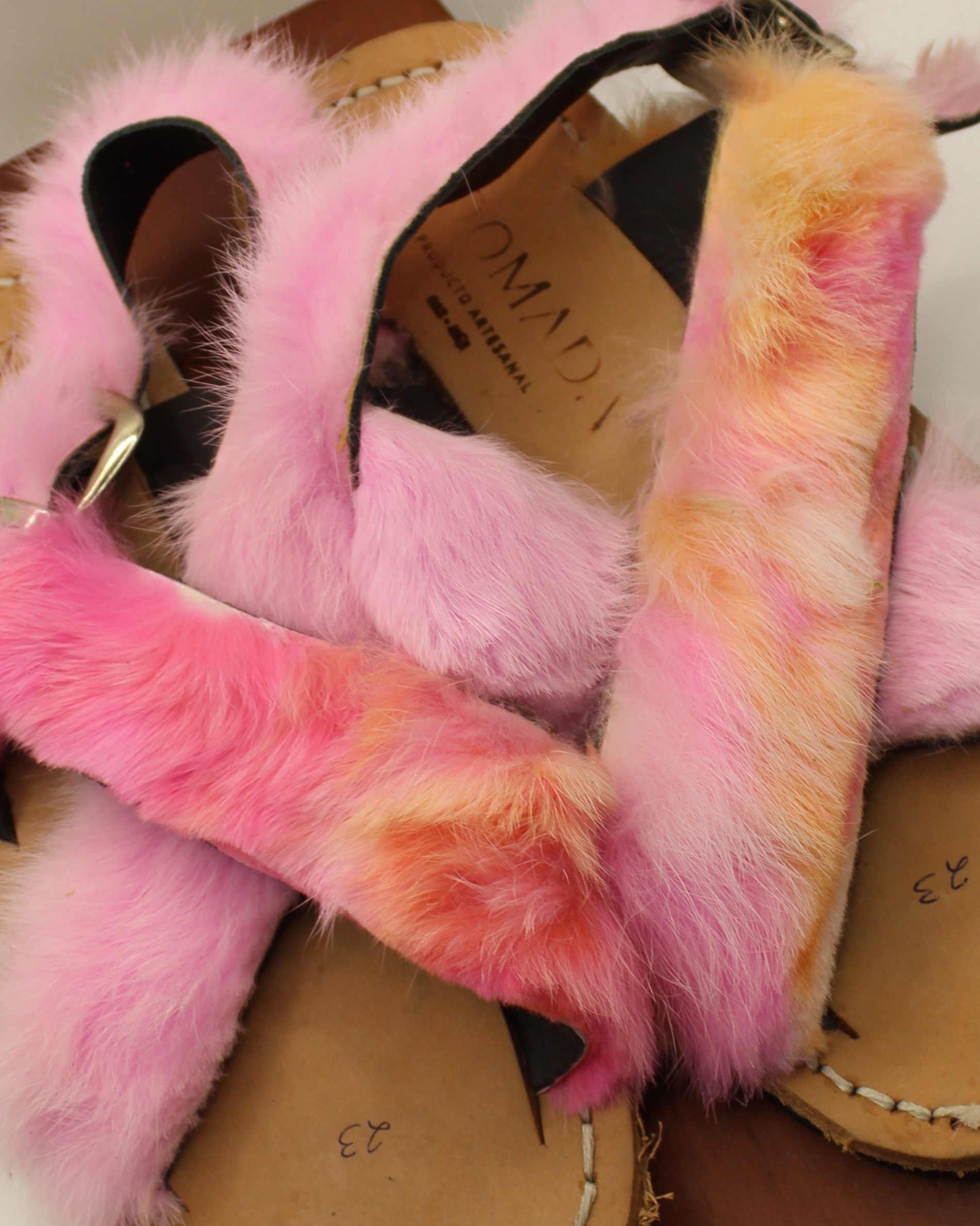 Huaraches artesanales elaborados en piel de conejo, disponibles en diferentes colores y forrados con suela de llanta, Modelo cómodo y durable en talla #23, ideal para uso diario