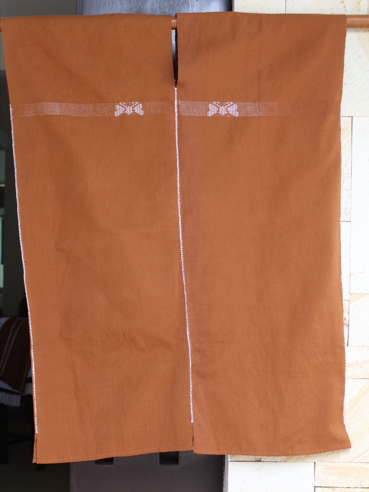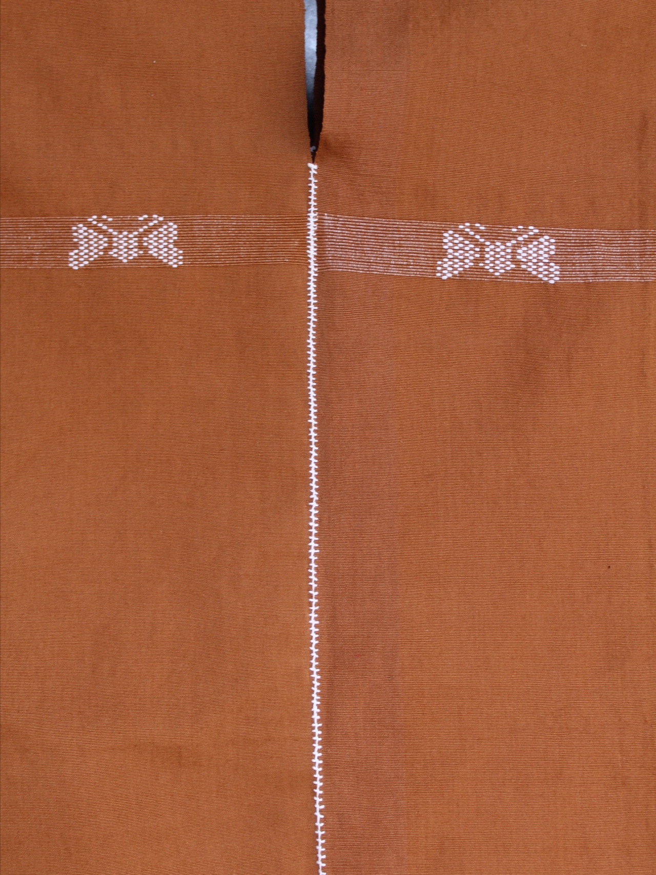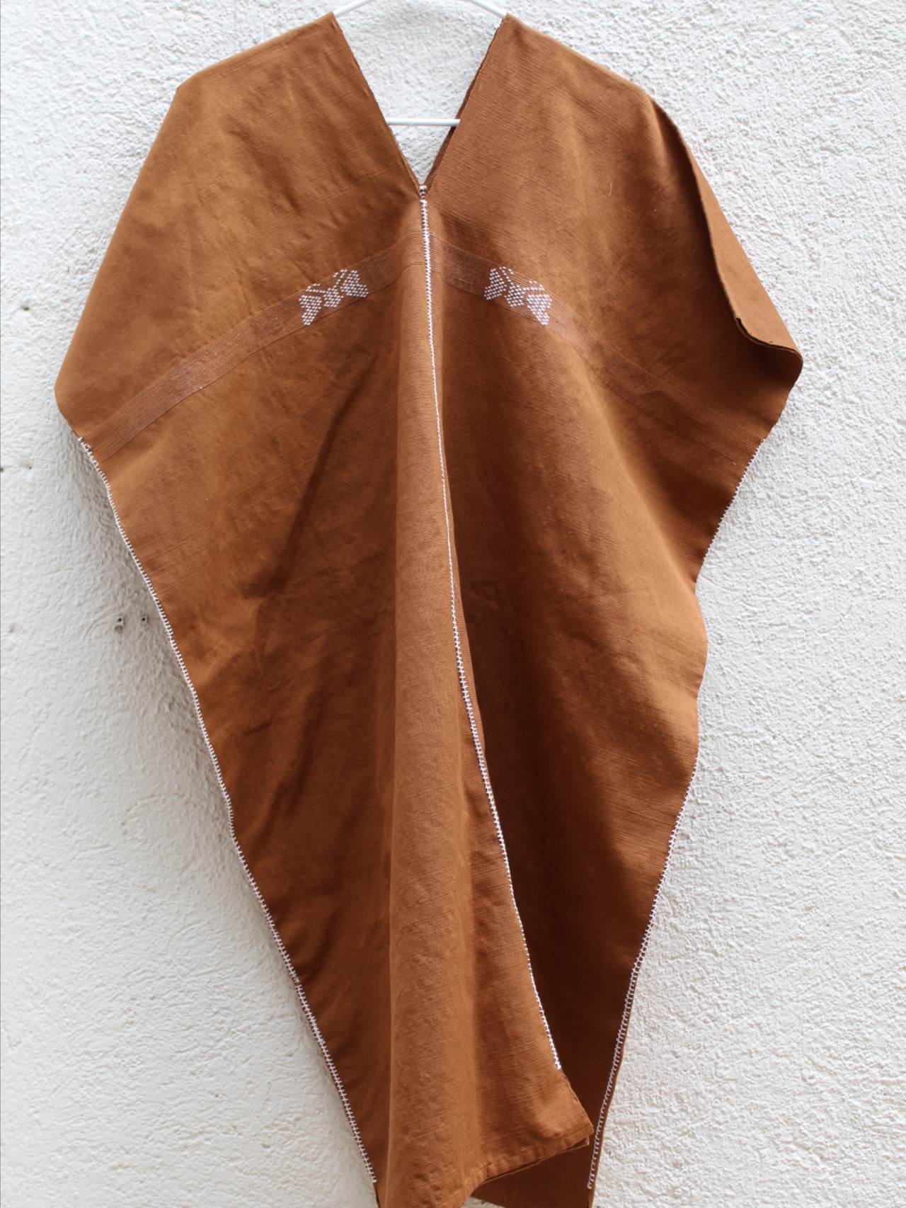 Hermoso huipil largo de dos lienzos en café, con un delicado bordado de mariposa blanca que le da un toque único y encantador.