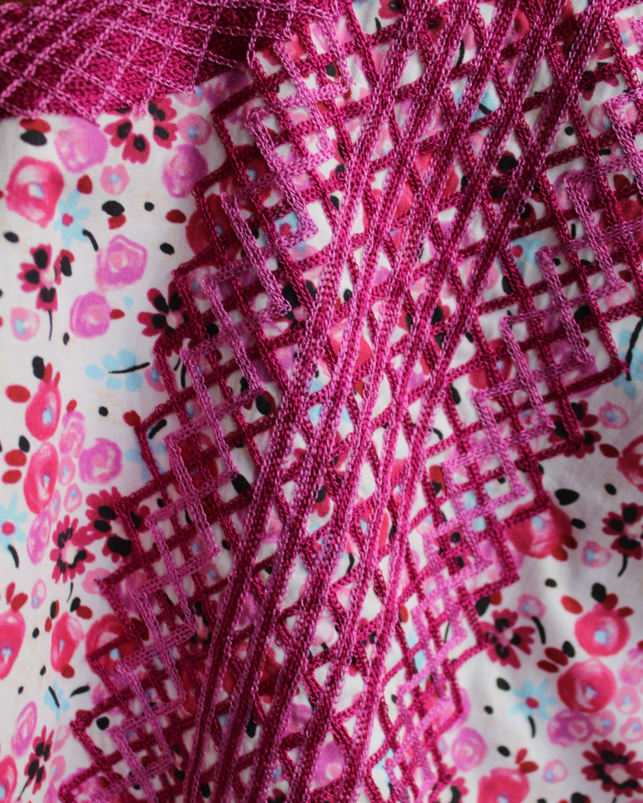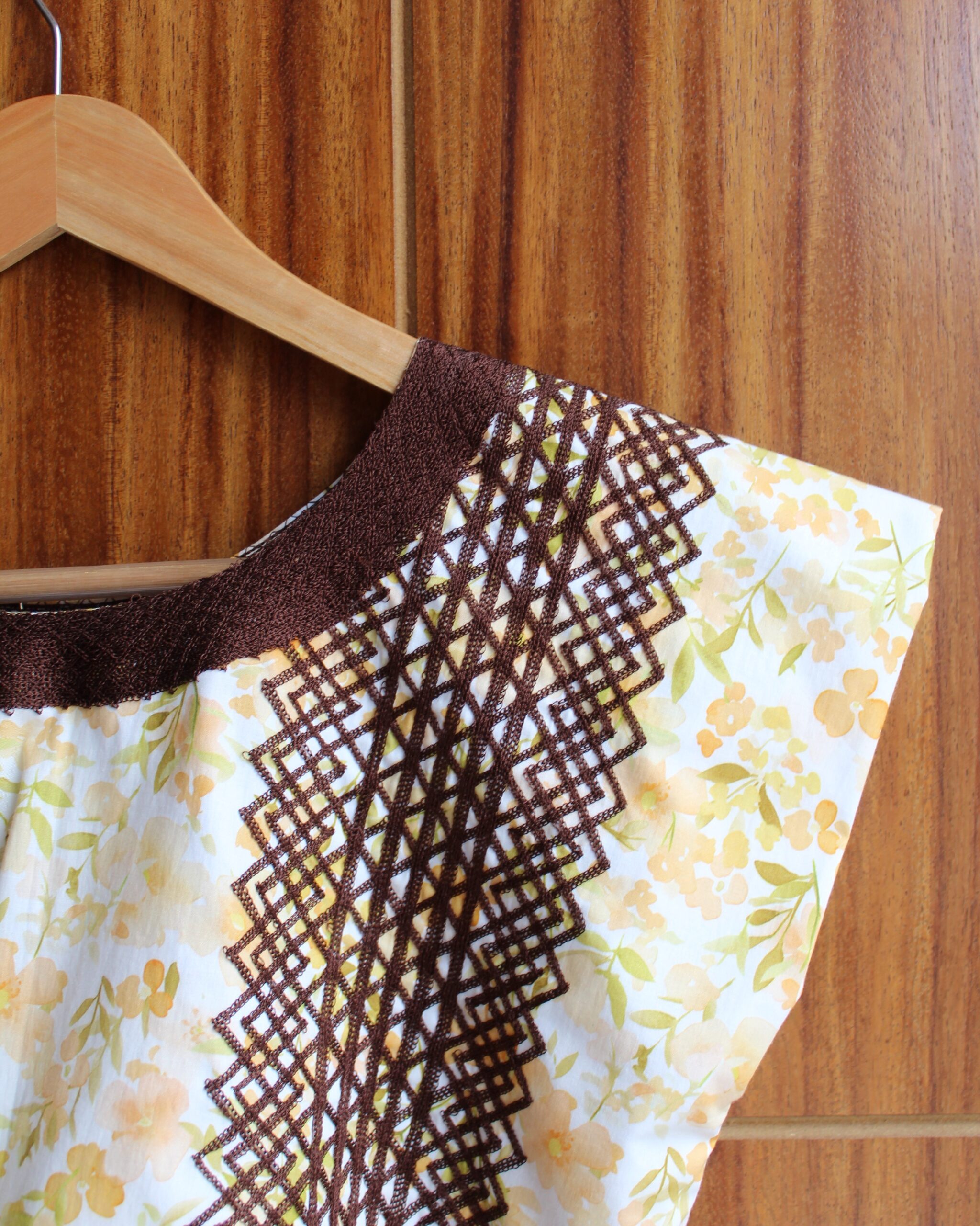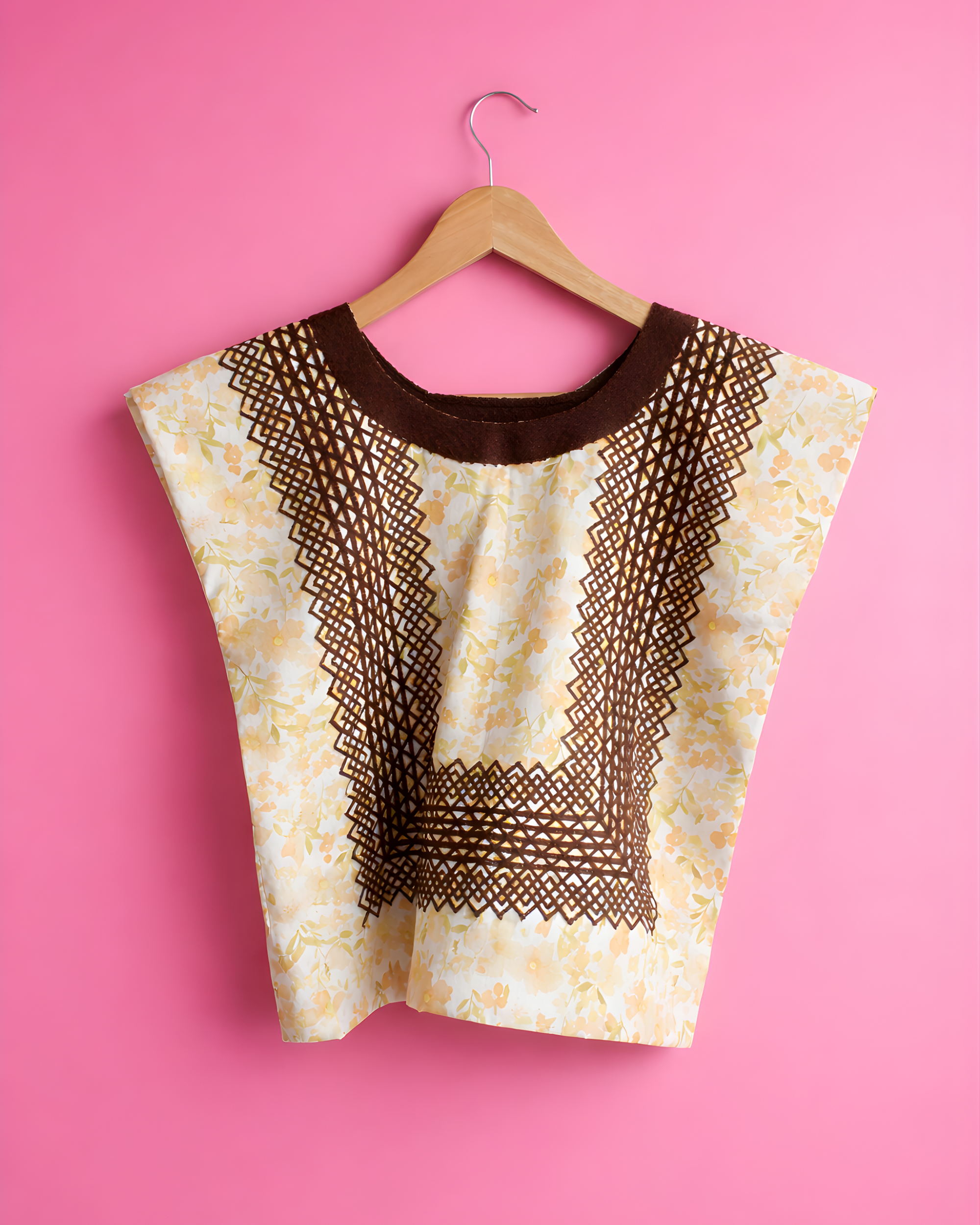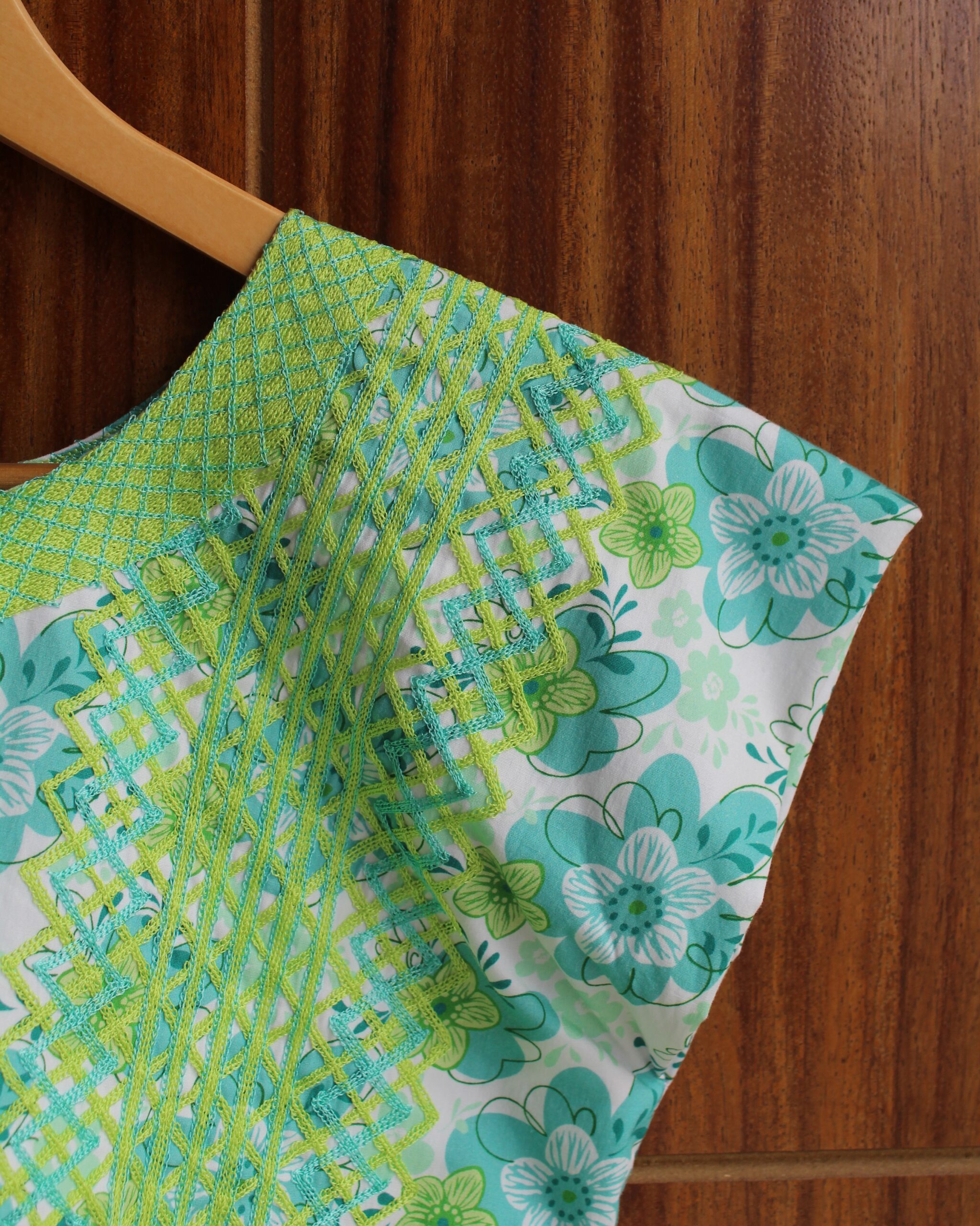 Huipil de cadenilla mixe, bordado en máquina de pedal, disponible en diferentes diseños que destacan por su color y detalle artesanal.