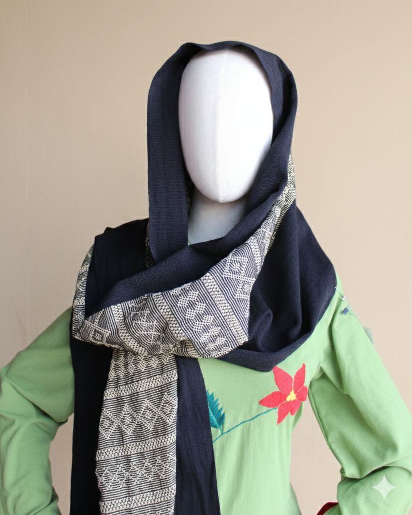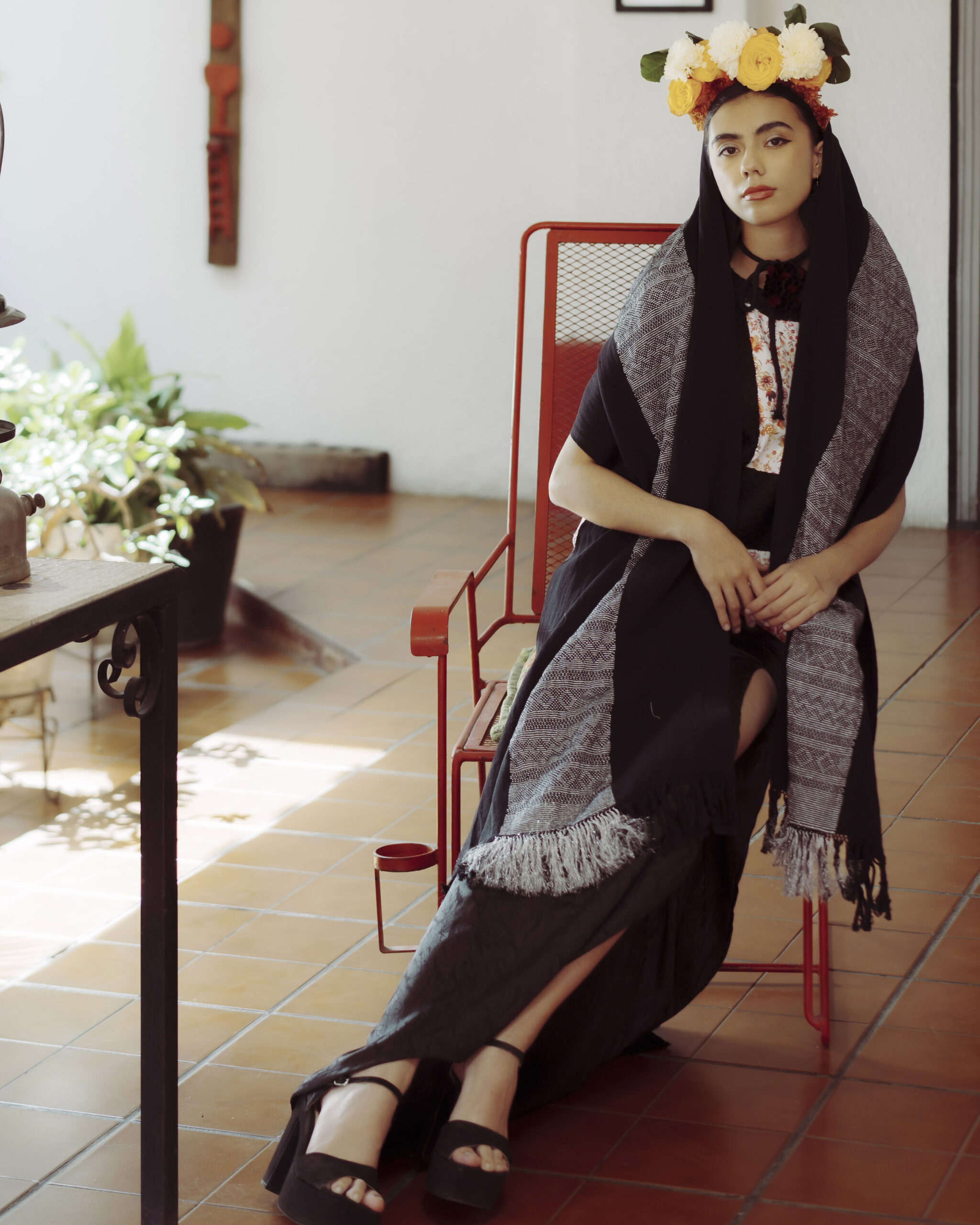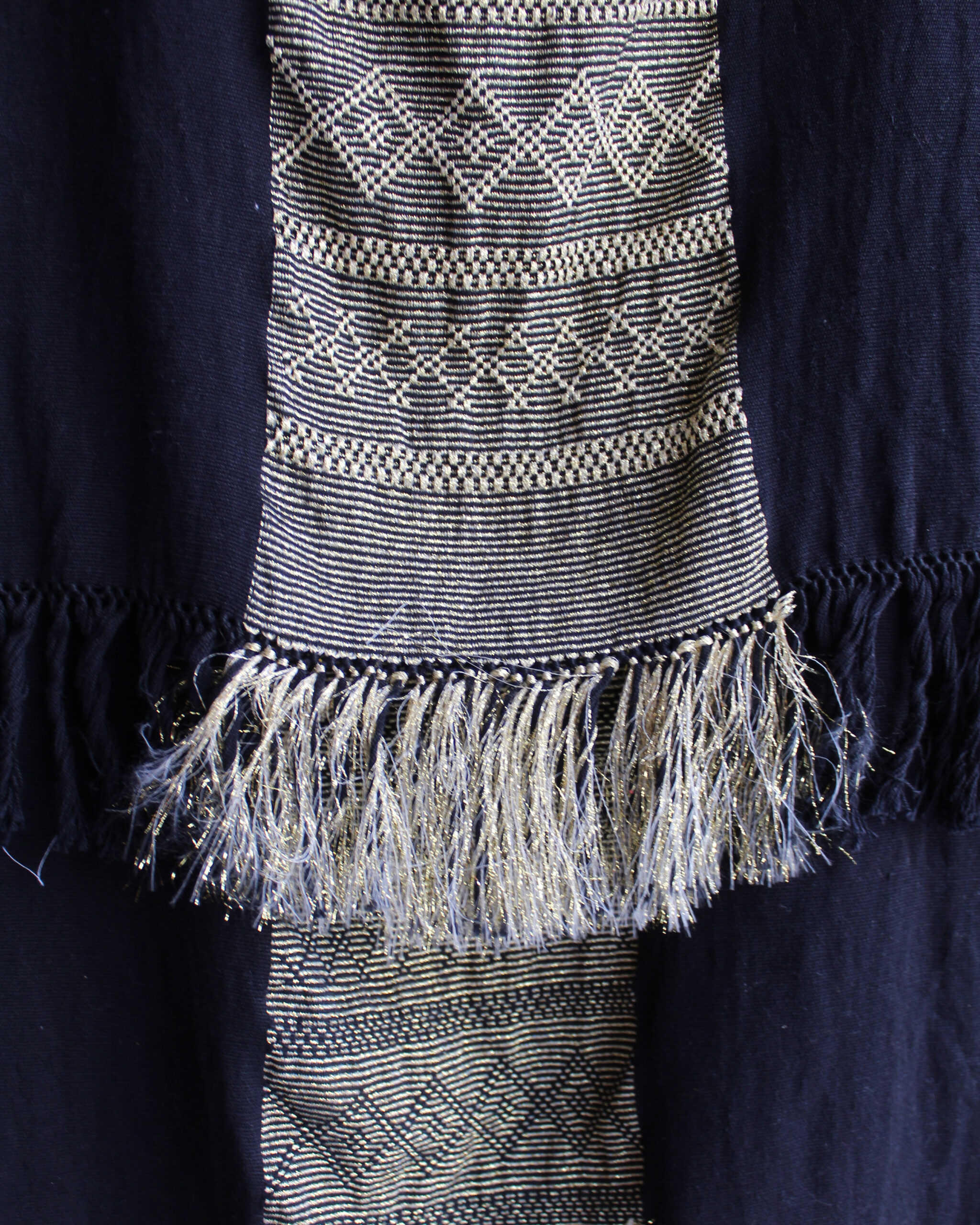 Rebozo brocado con hilo metálico: brillo artesanal que eleva tu look.