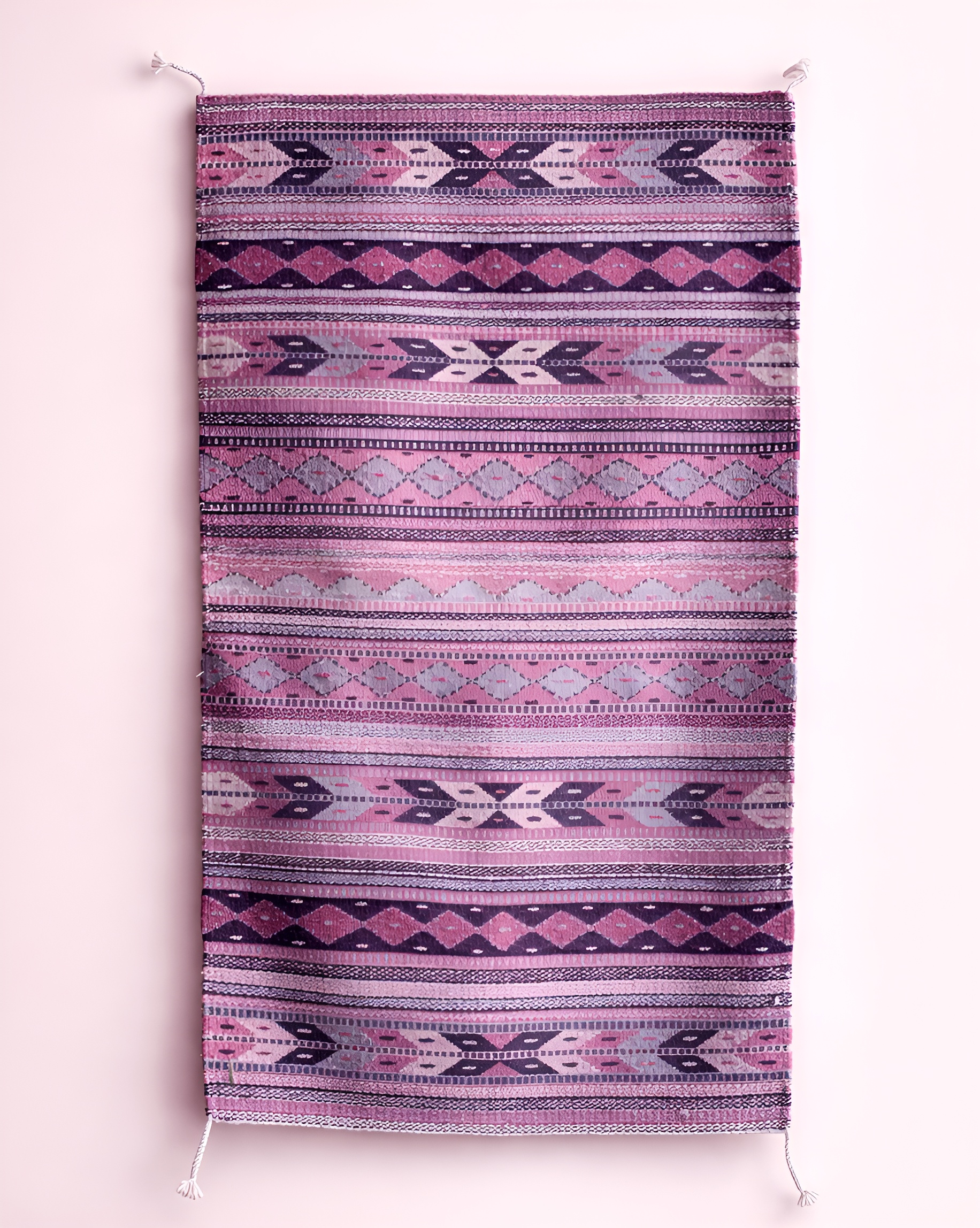 Tapete Cochinilla tradicional elaborado en lana, teñido con cochinilla en tonos morados, este tapete celebra la tradición con un enfoque contemporáneo. Su textura rica y noble aporta calidez y sofisticación