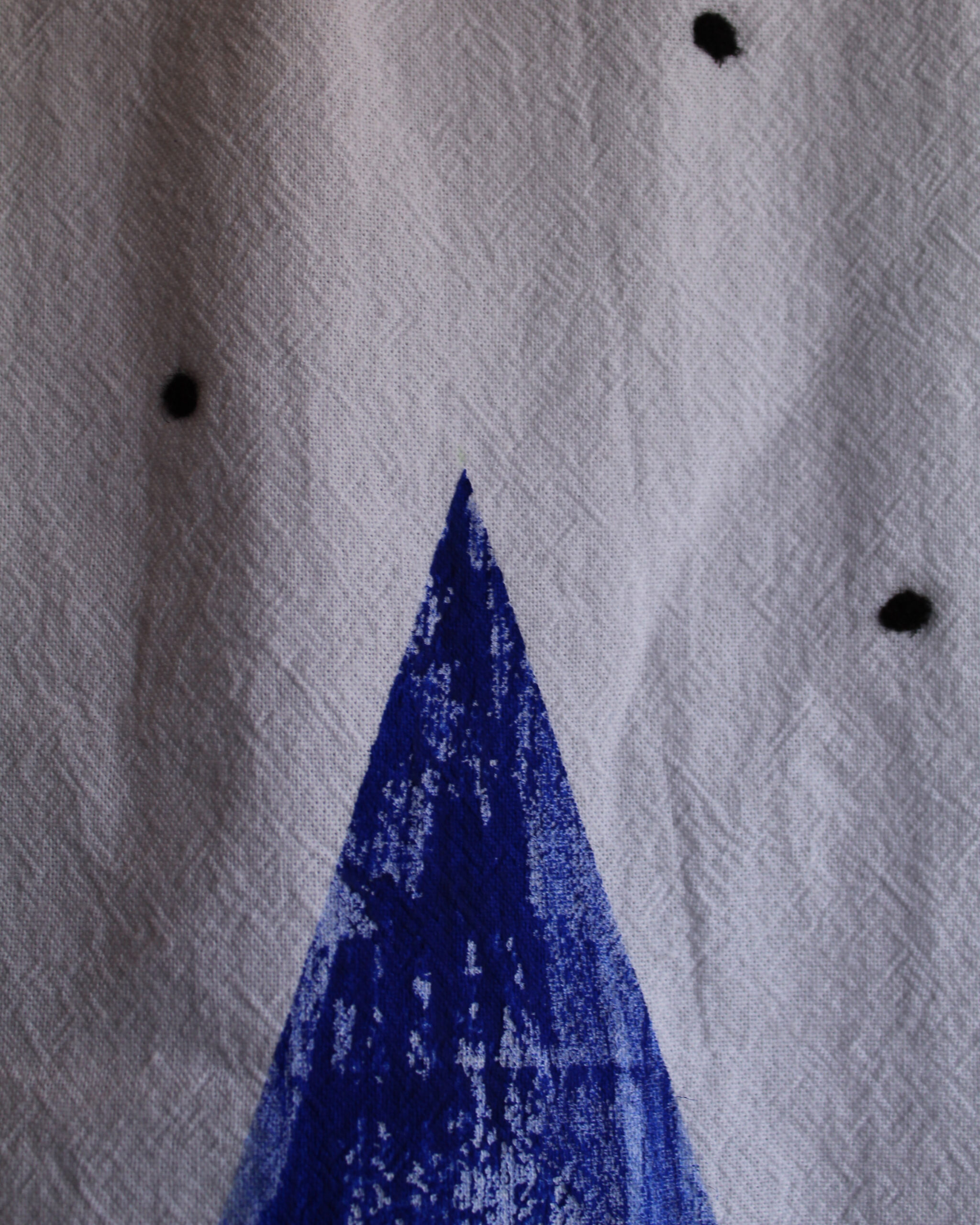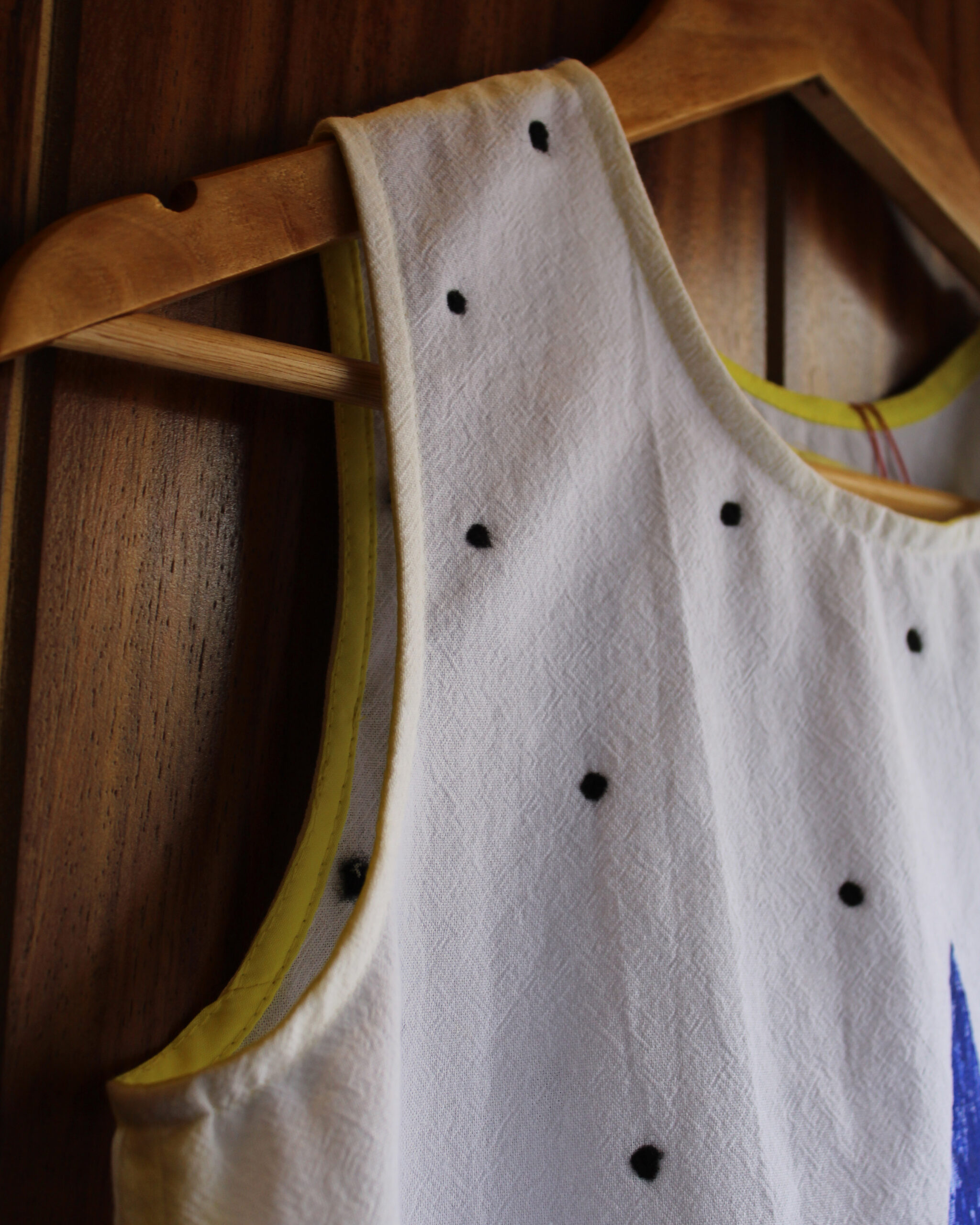 Top pintado a mano con aplicación de punto de lana, una fusión sutil entre arte textil y expresión contemporánea.