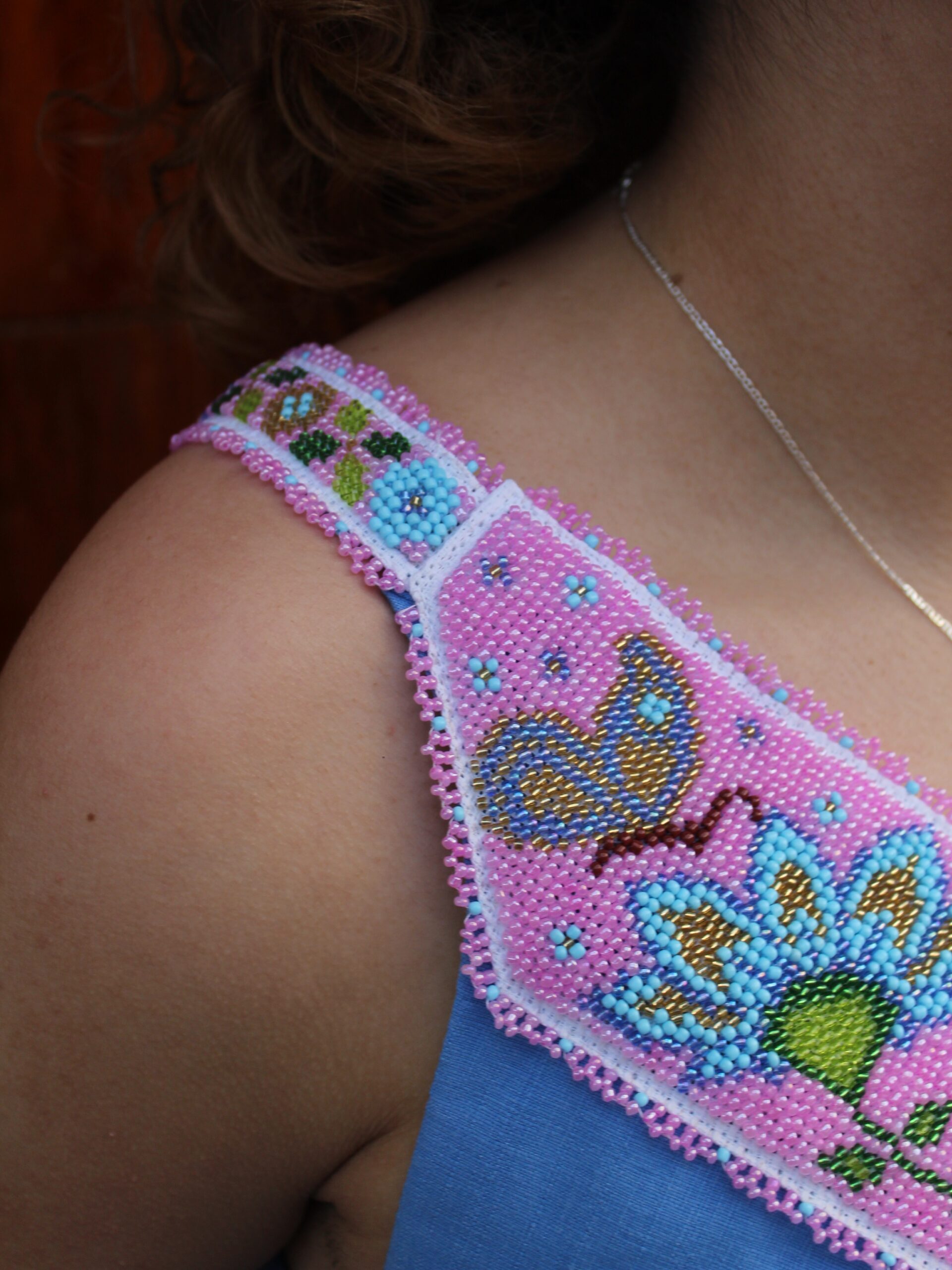 | Técnica | Bordado con chaquira, Telar de Cintura |
